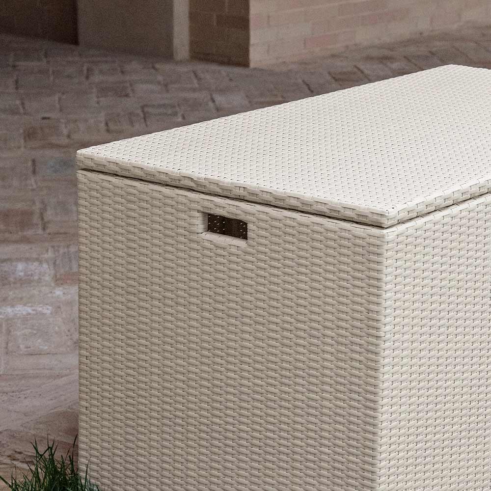 i rafinuar , i shkëlqyeshëm për ruajtjen e jastëkëve, peshqirëve, enëve dhe çdo aksesor tjetër që rrëmujë kopshtin ose verandën tuaj.