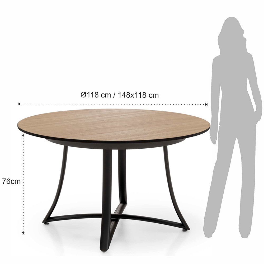 Kjo tryezë e rrumbullakët e zgjatur është një shembull i përsosur i dizajnit modern që kombinon funksionalitetin dhe stilin. Me një majë prej druri, kjo tavolinë përcjell një atmosferë të ngrohtë dhe mikpritëse, ndërsa baza metalike e zezë ofron një kontrast të fortë vizual që i shton të tërës një prekje elegance bashkëkohore .