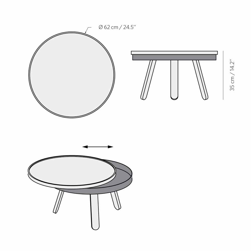 Masa (tabela e mbyllur) : diametri 62 x H 35 cm