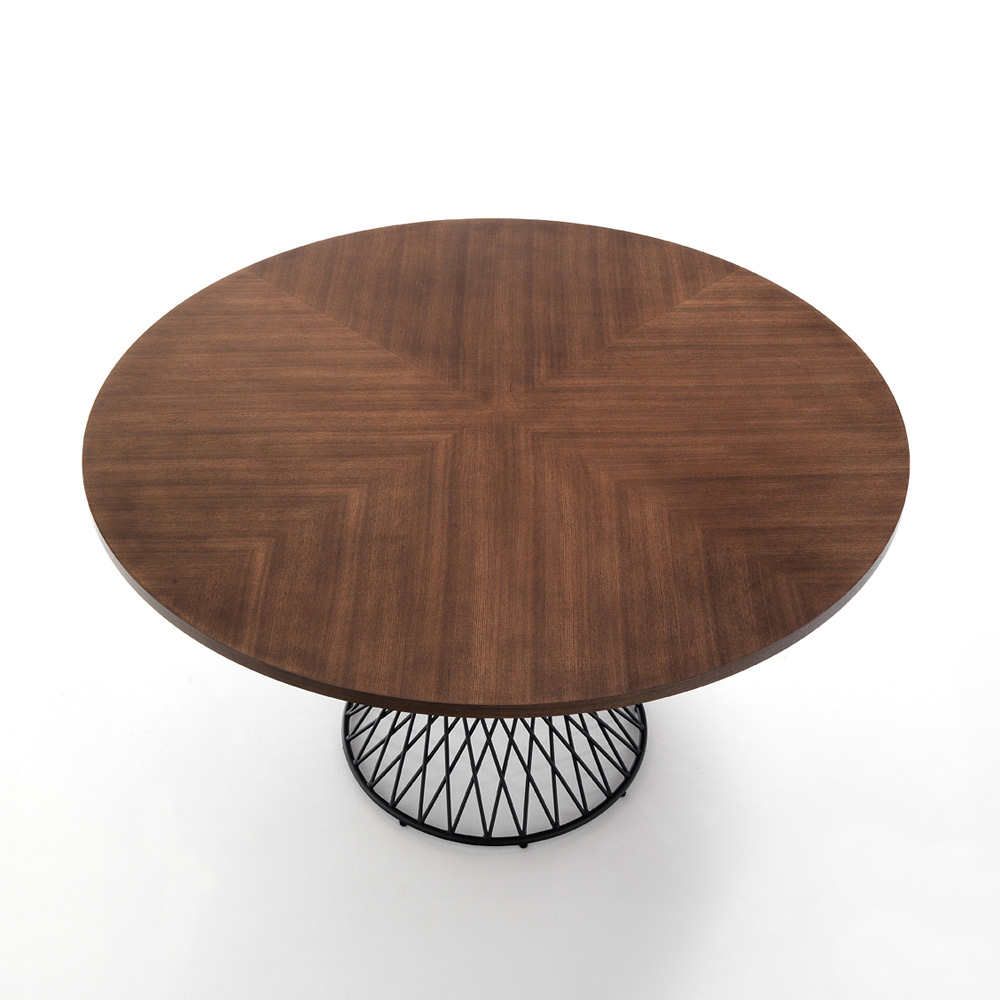 Tavolinë e brendshme e rrumbullakët me pjesën e sipërme në MDF të rimeso me ngjyrë arre të errët . 25 mm dhe bazament tërësisht prej metali të zi mat. Ky produkt është ideja perfekte për të gjithë ata që duan t'i japin dhomës një ngjyrim moderniteti dhe freskie , qoftë dhomë ndenje, kuzhinë apo ambient me kontratë. Materialet e zgjedhura për ndërtimin janë të cilësisë më të lartë për t'i garantuar klientit një tavolinë jo vetëm të bukur për t'u parë, por edhe funksionale dhe rezistente , e cila çliron gjithë mjeshtërinë e saj.