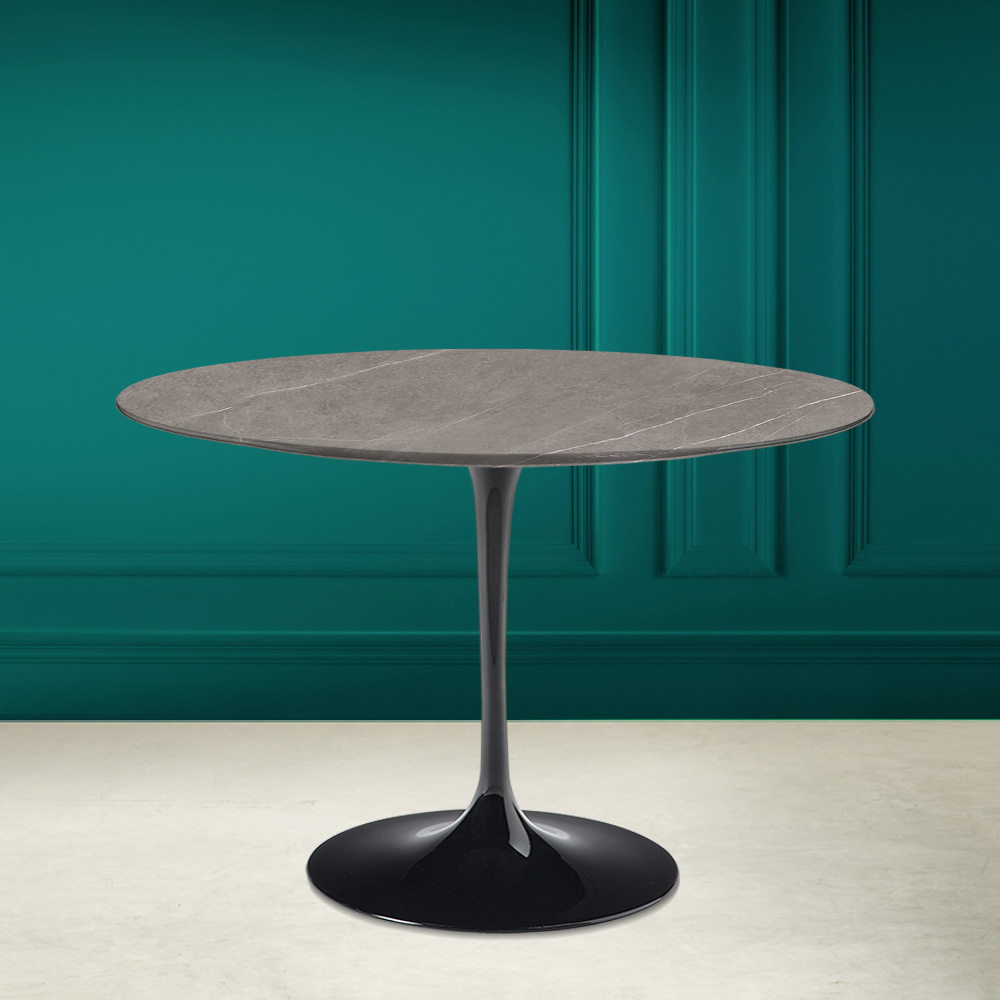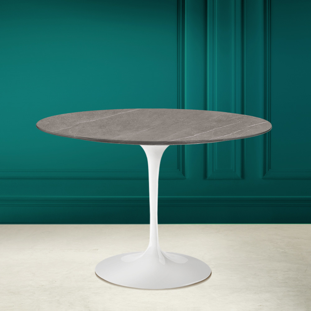 Tavolinë ngrënie tërësisht Prodhuar në Itali me majë të rrumbullakët në qeramikë guri gri, efekt guri me vena gri mat dhe bazë alumini të lëmuar. Kjo tryezë arrin të kombinojë funksionalitetin dhe prakticitetin me elegancën dhe përsosmërinë falë përfundimeve të thjeshta dhe qeramikës së veçantë prej guri gri. Produkti ka një formë lineare dhe të rafinuar që e bën atë të përshtatshëm për kompletimin e arredimit të çdo dhome ndenjeje dhe kuzhine, duke i dhënë një prekje unike. Qeramika gri e gurit ka një ngjyrë dhe grafikë shumë komplekse dhe të sofistikuar që e bën dhomën mikpritëse dhe të paharrueshme. Kjo tavolinë është ideja perfekte për të arreduar çdo vend me shije dhe, në të njëjtën kohë, lehtësi në përdorim .