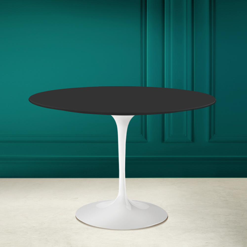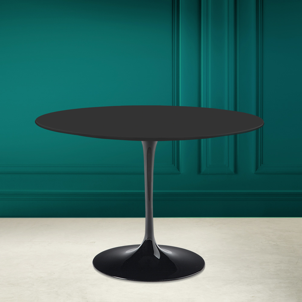 Tavolinë e rrumbullakët e ngrënies me majë qeramike të zezë të butë, efekt të zi të butë mat dhe bazë alumini të lëmuar tërësisht Prodhuar në Itali. Kjo tabelë kombinon funksionalitetin dhe elegancën falë materialeve të përdorura për ndërtimin e saj. Qeramika e zezë e butë ka vena moderne dhe të gjalla që i japin tryezës një prekje origjinale dhe të rafinuar dhe alumini i lëmuar i bazës siguron stabilitet dhe cilësi . Ky produkt i një lloji është i përsosur për t'u përfshirë në çdo dhomë ndenjeje dhe kuzhinë me çdo stil arredimi nga modern në bashkëkohor në elegant falë përfundimeve të tij të thjeshta dhe të sofistikuara.