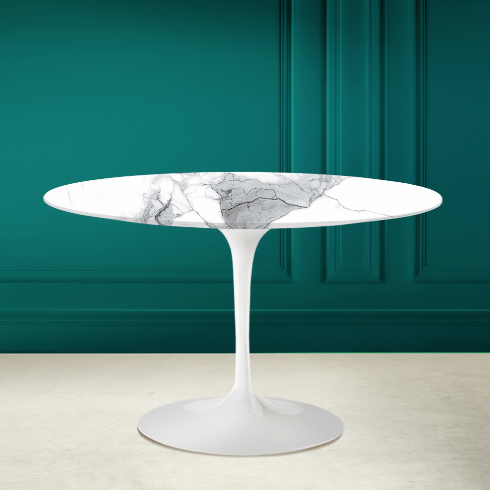 Tavolinë ngrënieje me majë të rrumbullakët në statuar me qeramikë shumë të lartë, efekt mermeri statuario mat dhe bazë alumini të lëmuar tërësisht Prodhuar në Itali.Përfundimet lineare dhe të rafinuara krijojnë një element që është i lehtë për t'u futur në çdo stil arredimi të çdo dhome ndenjeje dhe kuzhine. Bashkimi midis qeramikës Statuario Altissimo dhe aluminit të lëmuar e bën këtë tryezë të përshtatshme për të gjitha situatat dhe rastet e përdorimit, duke krijuar një dhomë unike dhe mikpritëse. Fjalët kyçe për të përshkruar këtë produkt janë prakticiteti dhe funksionaliteti pa harruar elegancën e dhënë nga ngjyra dhe grafika e veçantë e qeramikës statuario altissimo.