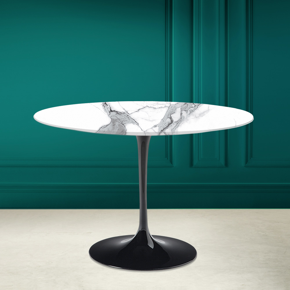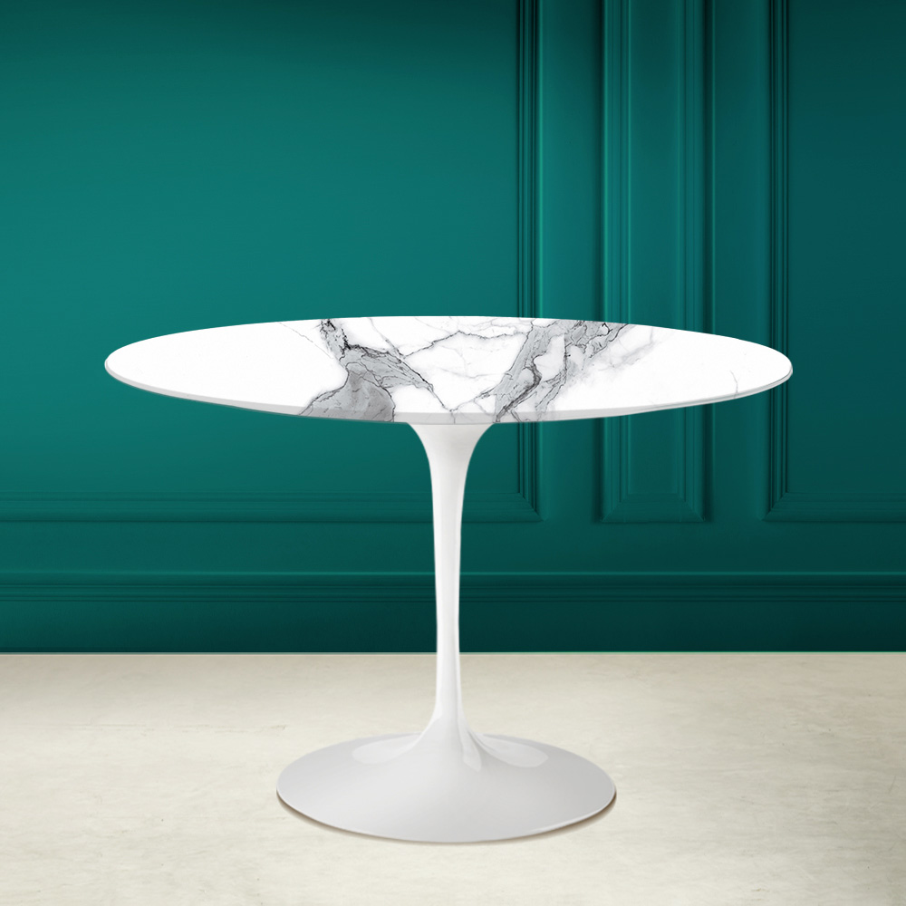 Tavolinë ngrënie tërësisht Prodhuar në Itali me majë të rrumbullakët qeramike shumë të lartë Statuario, efekt mermeri mat Statuario dhe bazë alumini të lëmuar. Kjo tryezë arrin të kombinojë funksionalitetin dhe prakticitetin me elegancën dhe përsosmërinë falë përfundimeve të thjeshta dhe qeramikës së veçantë statutare Altissimo. Produkti ka një formë lineare dhe të rafinuar që e bën atë të përshtatshëm për kompletimin e arredimit të çdo dhome ndenjeje dhe kuzhine, duke i dhënë një prekje unike. Qeramika statuario altissimo ka një ngjyrë dhe grafikë shumë komplekse dhe të sofistikuara që e bëjnë dhomën mikpritëse dhe të paharrueshme. Kjo tavolinë është ideja perfekte për të arreduar çdo vend me shije dhe, në të njëjtën kohë, lehtësi në përdorim .