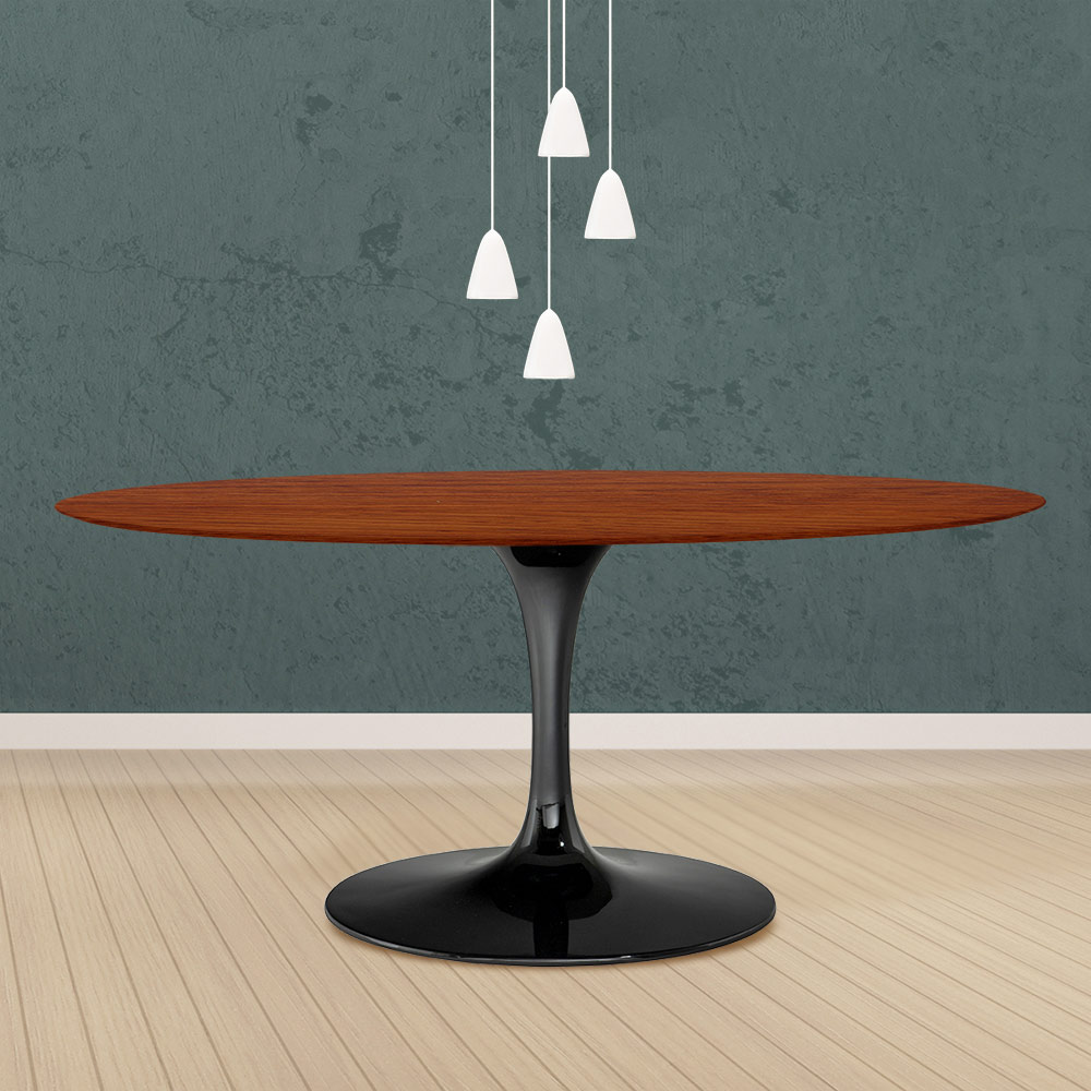 Tavolinë ngrënieje me majë ovale prej lisi të lyer me qershi dhe me bazë alumini të lëmuar tërësisht e prodhuar në Itali . Bashkimi i paprecedentë midis formës ovale dhe lisit të lyer me qershi të pjesës së sipërme i jep kësaj tavoline një prekje unike dhe elegance të pagabueshme . Është perfekt për të kompletuar mobilimin e çdo dhome ndenjeje dhe kuzhine falë përfundimeve të thjeshta dhe të rafinuara që i japin dhomës një atmosferë të ngrohtë dhe mikpritëse. Materialet e përdorura për prodhim garantojnë cilësi dhe rezistencë edhe me kalimin e kohës dhe e bëjnë këtë produkt të përshtatshëm për çdo situatë dhe rast përdorimi.