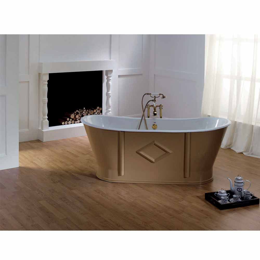 Vaskë e pavarur tërësisht prej gize e mbështetur në tokë, me dekorim anash. Fund i brendshëm i smaltuar me titan 2 mm dhe i jashtëm i lyer me ngjyra të ndryshme. Vaska që përfaqëson majën e luksit!