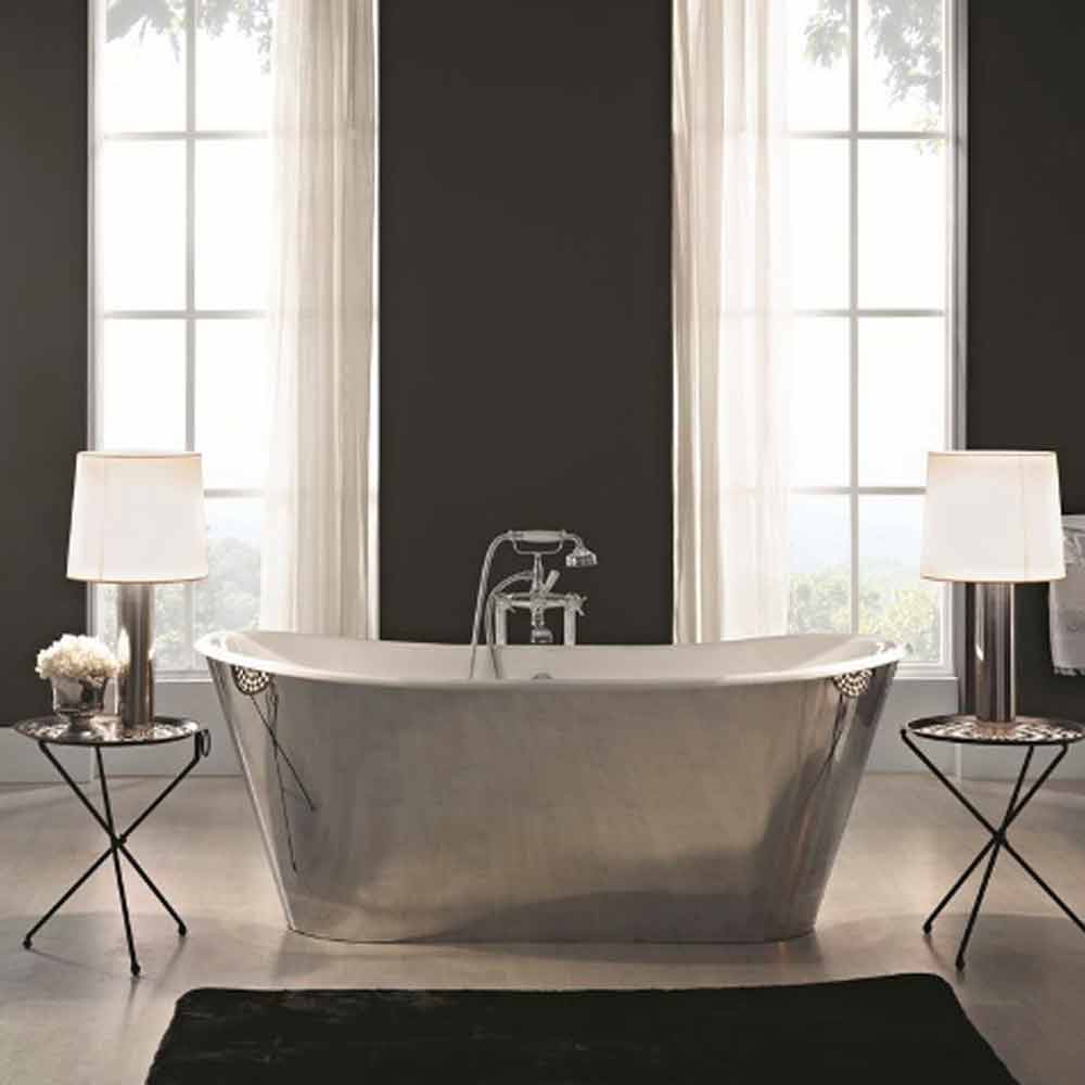 Vaskë prej hekuri e pavarur e veshur me çelik Sharon nga jashtë Vaskë e pavarur e bërë tërësisht prej gize mbështetur në tokë. Përfundim i brendshëm i smaltuar me titan 2 mm dhe i kromuar jashtë në çelik. Vaskë që përfaqëson majën e luksit!