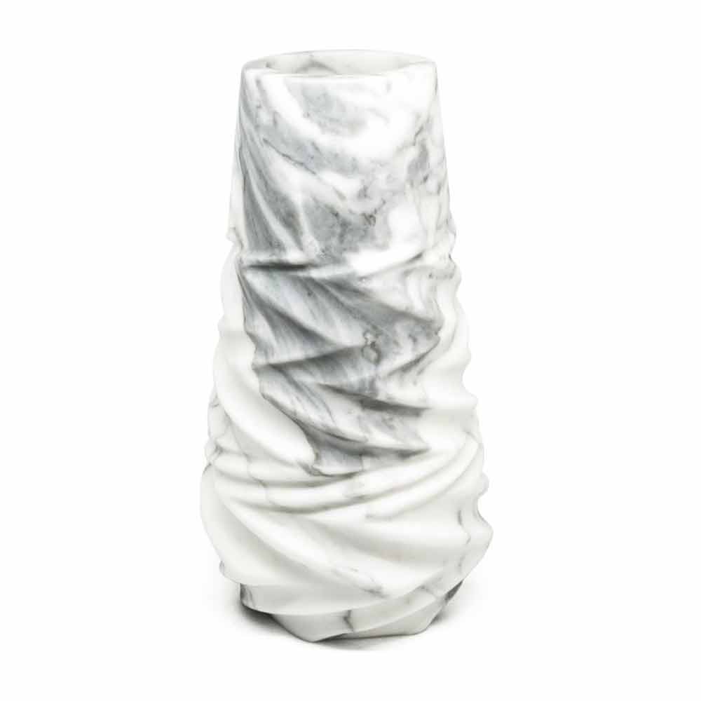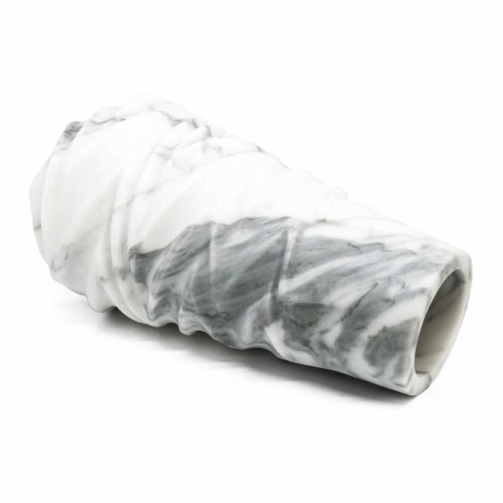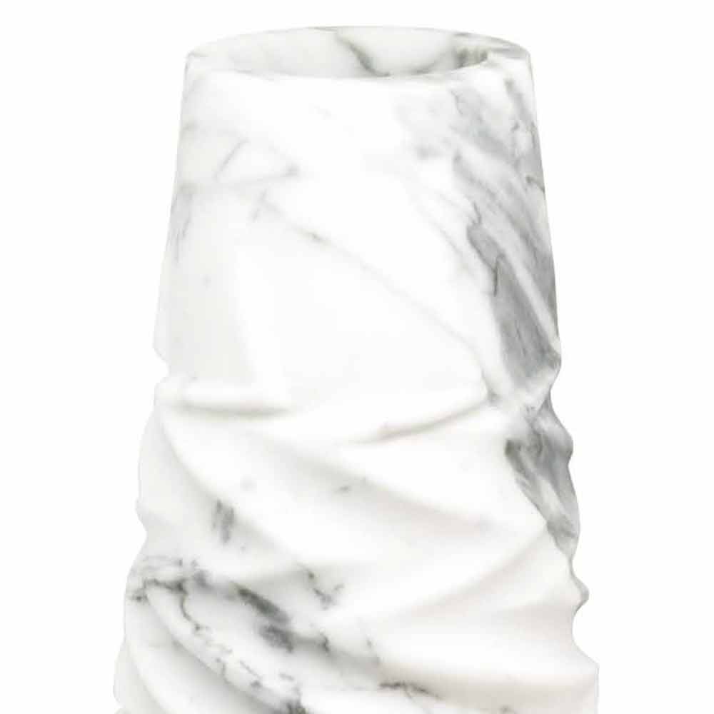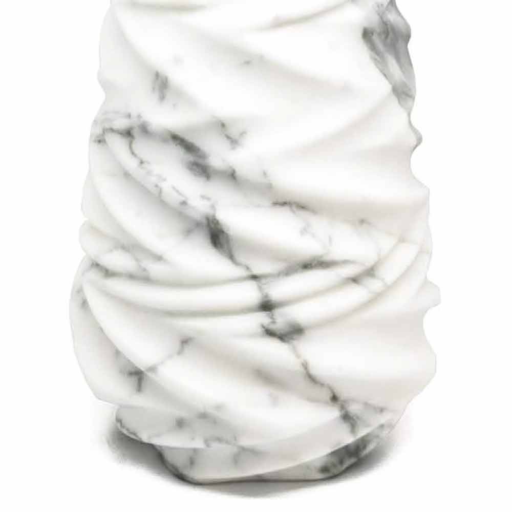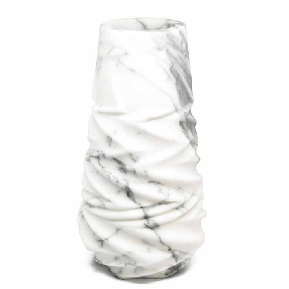 Vazo dekorative e bërë tërësisht nga mermeri arabesk i cili është një larmi mermeri i bardhë i imët me damarë gri të errët, të quajtur "arabeska". Shtë një copë unike pasi çdo bllok mermeri i përdorur ndryshon nga të tjerët për sa i përket venave dhe nuancave. Produkt i punuar me dorë në Itali nga profesionistë të specializuar për breza në përpunimin e mermerit me cilësi të lartë.