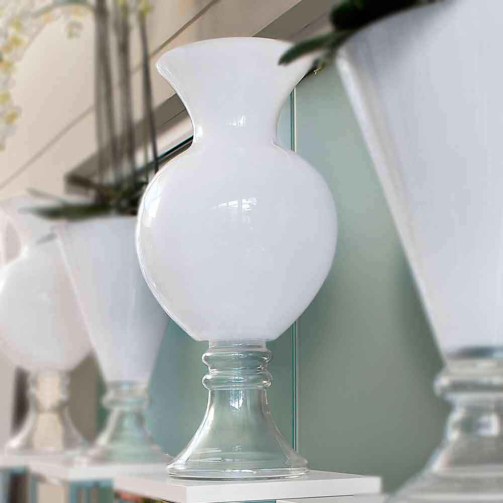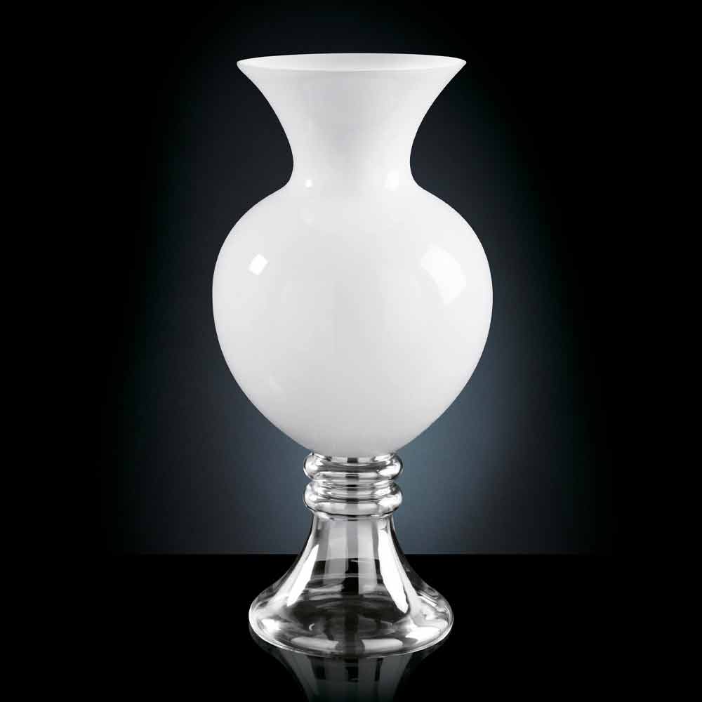 Vazo elegante per ambiente te brendshme ne xham te bardhe dhe transparente Prodhuar ne Itali.