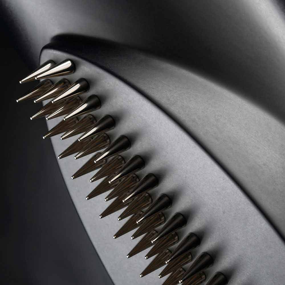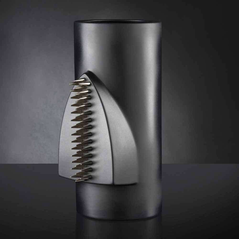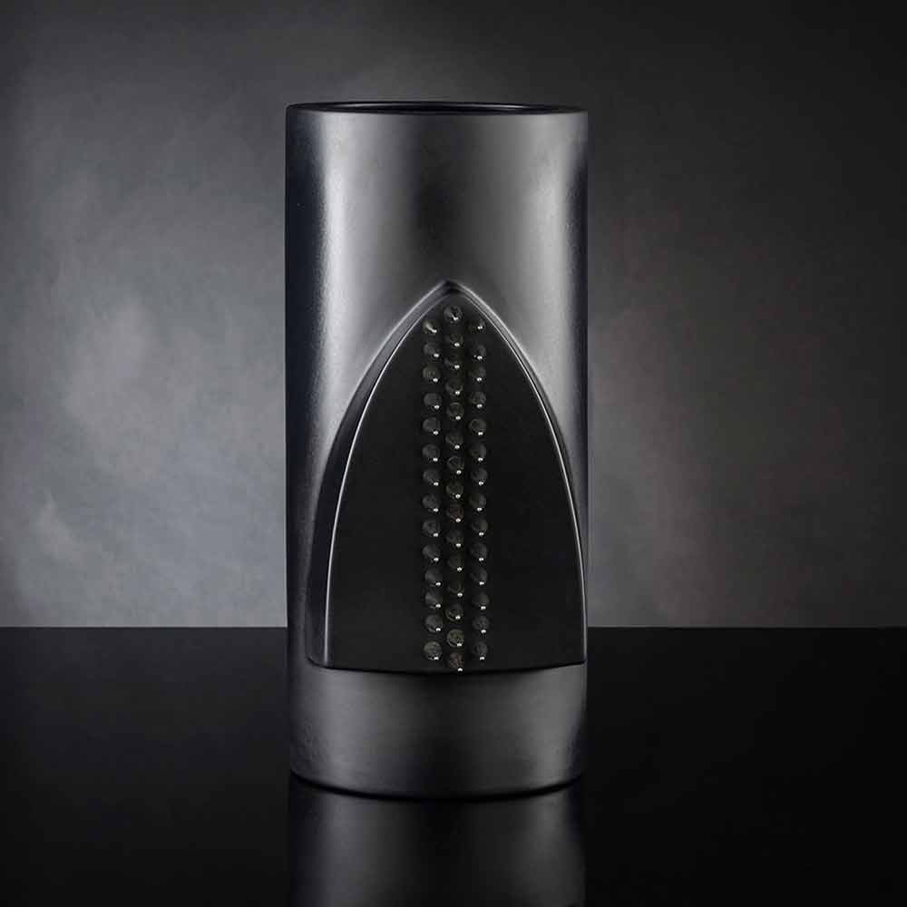 Vazo dekorative e brendshme ne qeramike te zeze mat e pasuruar me thonj çeliku,bërë përmes një zejtarie Made in Italy . Nga takimi midis elegancës ekstreme të qeramikës dhe prekjes moderne të detajeve metalike, lindi një element dekorativ për ambiente moderne, plot personalitet dhe karakter, ideal për ata që duan të pajisin hapësirat e tyre me pajisje me një ndikim të fortë skenografik që mund të ndihmoni për të kompletuar pamjen e dhomës duke krijuar një harmoni të përsosur. Prodhimi artizanal përfaqëson një nga pikat e tij të forta ndërsa rritet dhe thekson vlerën dhe cilësinë e produktit, duke i dhënë jetë një rezultati ekskluziv dhe të rafinuar . Një stil ideal për ambientet më të larmishme, nga orenditë e shtëpive deri tek ato të hoteleve, restoranteve, zonave të kontraktuara, llixhave por edhe si një mjedis për ngjarje dhe dasma.