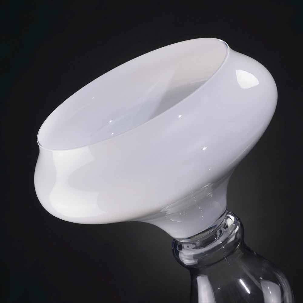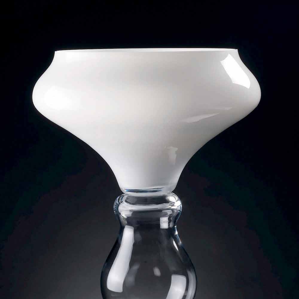 Vazo elegante per ambiente te brendshme ne xham te bardhe dhe transparente prodhuar ne Itali.