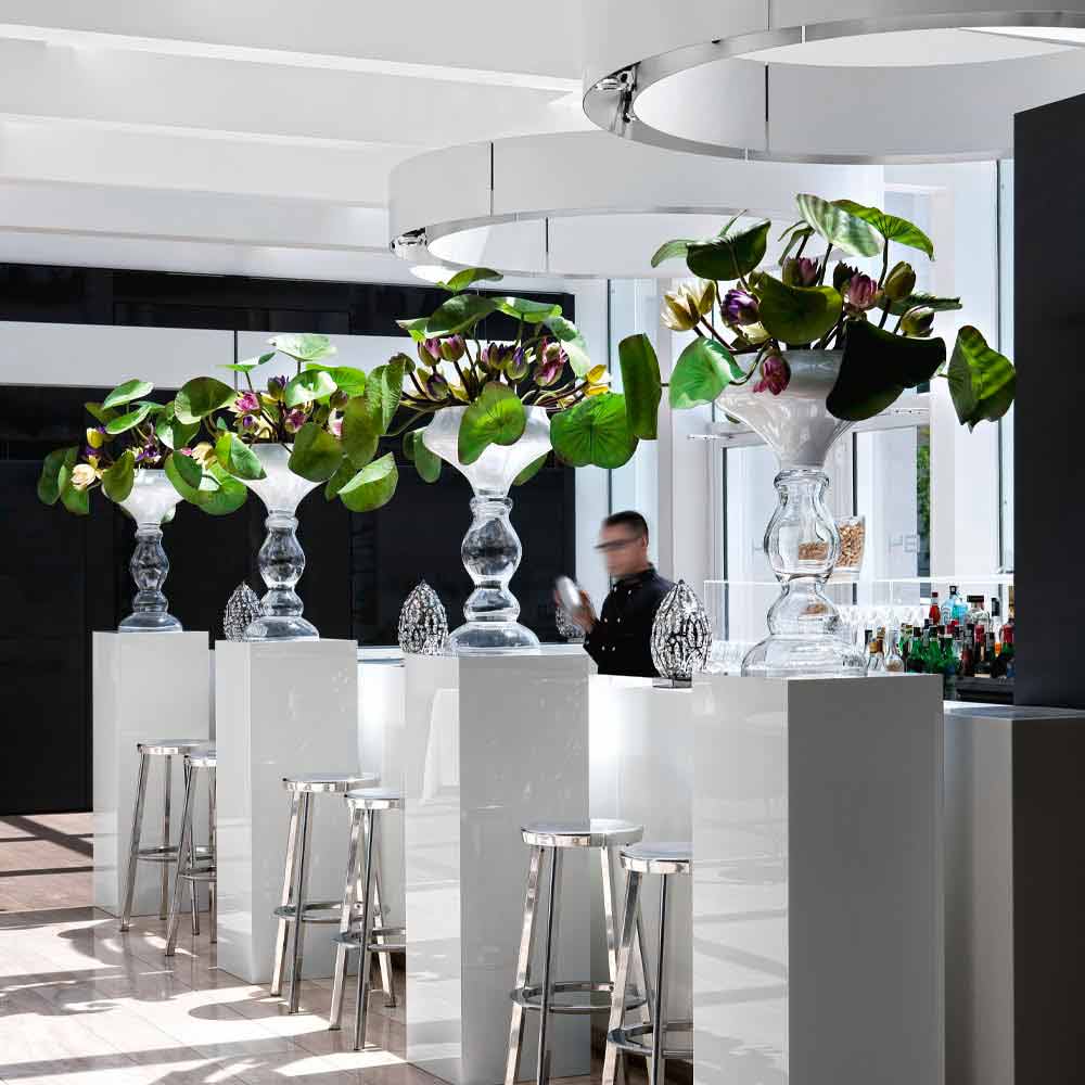 Vazo zbukuruese shtëpie në xham të bardhë me bazë transparente e bërë përmes një përpunimi 100% Made in Italy . Një plotësues modern , estetika e të cilit shpreh përsosjen duke propozuar një figurë të hollë me forma të buta dhe të rrëmbyeshme, perfekte për mobilimin dhe kompletimin e ambienteve me një stil ekskluziv falë elegancës së përjetshme të xhamit, një material cilësor me vlerë të lartë . Një dizajn ideal për ambientet më të larmishme, nga orenditë e shtëpive deri tek ato të hoteleve, restoranteve, zonave të kontraktuara, llixhave por edhe si një mjedis për ngjarje dhe dasma.