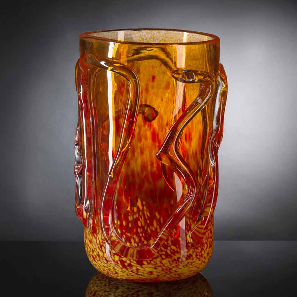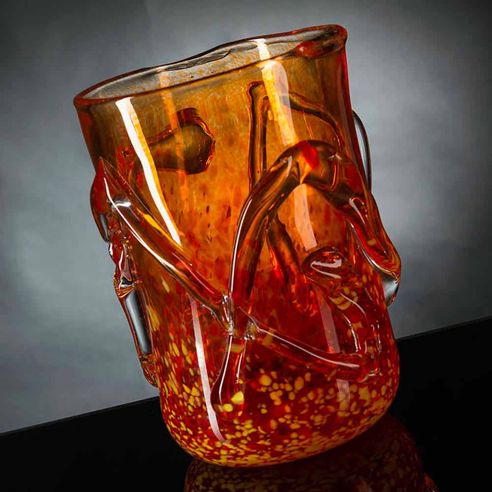 xham Murano në lulëzim me fund të portokalltë me strukturë të punuar. Dizajni i mrekullueshëm