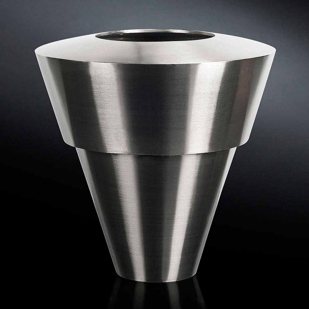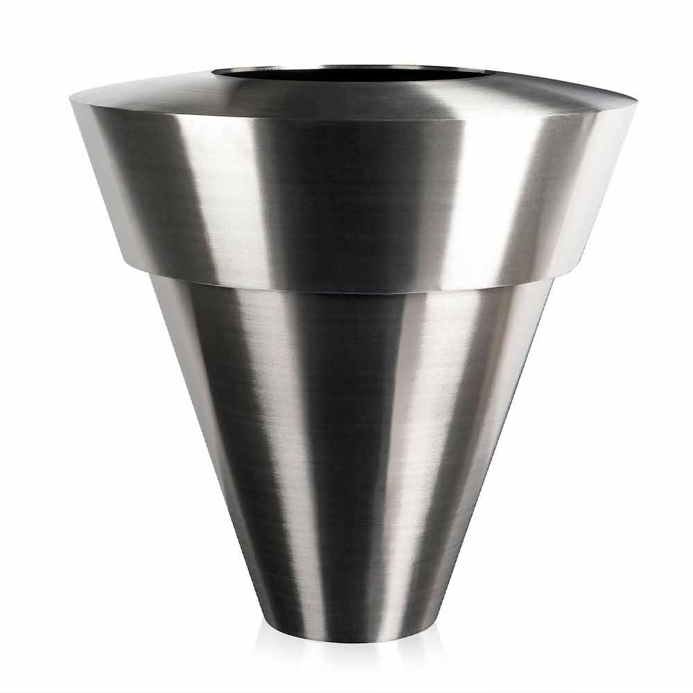 Vazo elegante për ambiente te brendshme ne çelik te krehur prodhuar ne Itali.