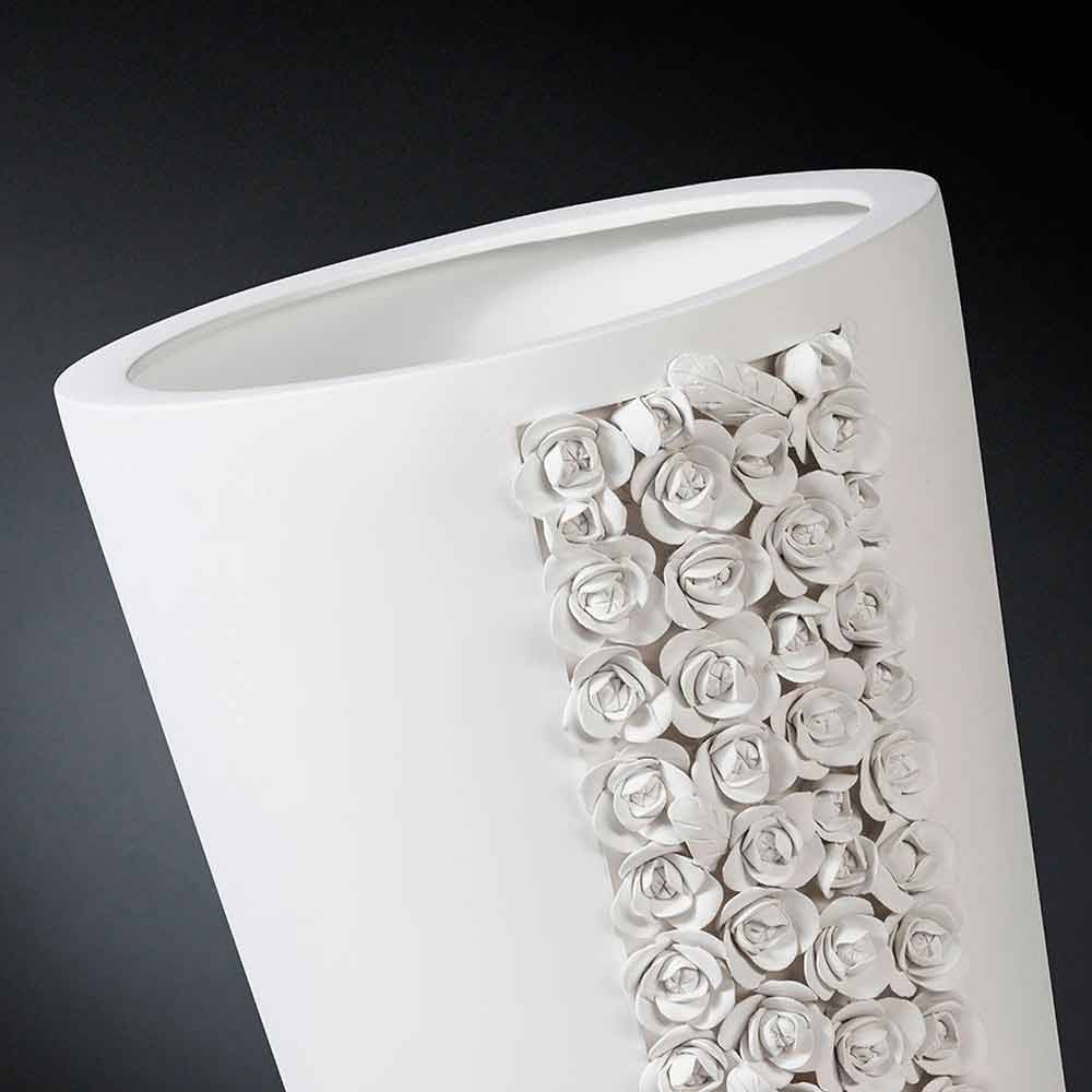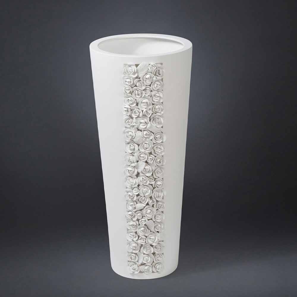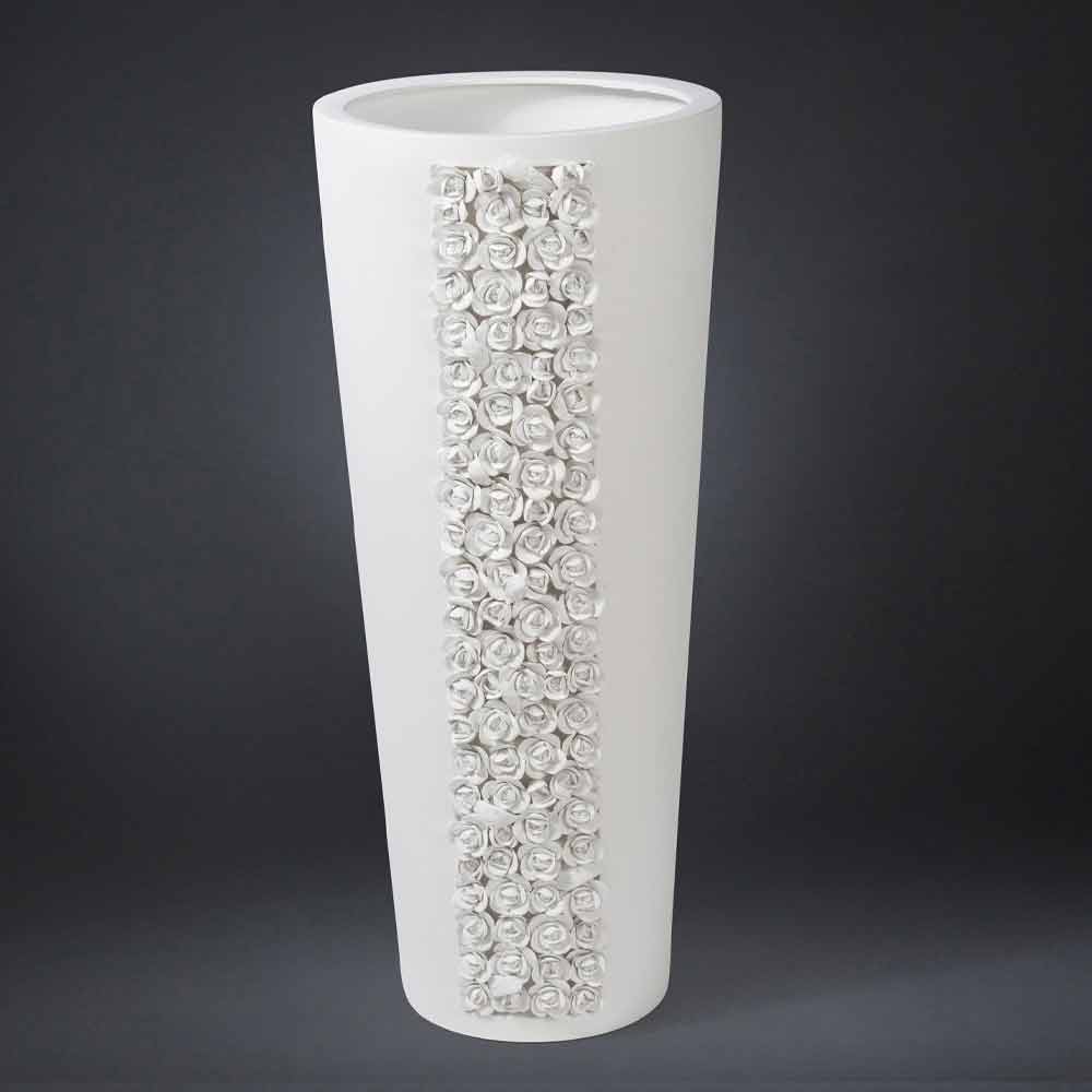 Vazo e gjatë dekorative në qeramikë të bardhë e punuar me dorë në Itali.