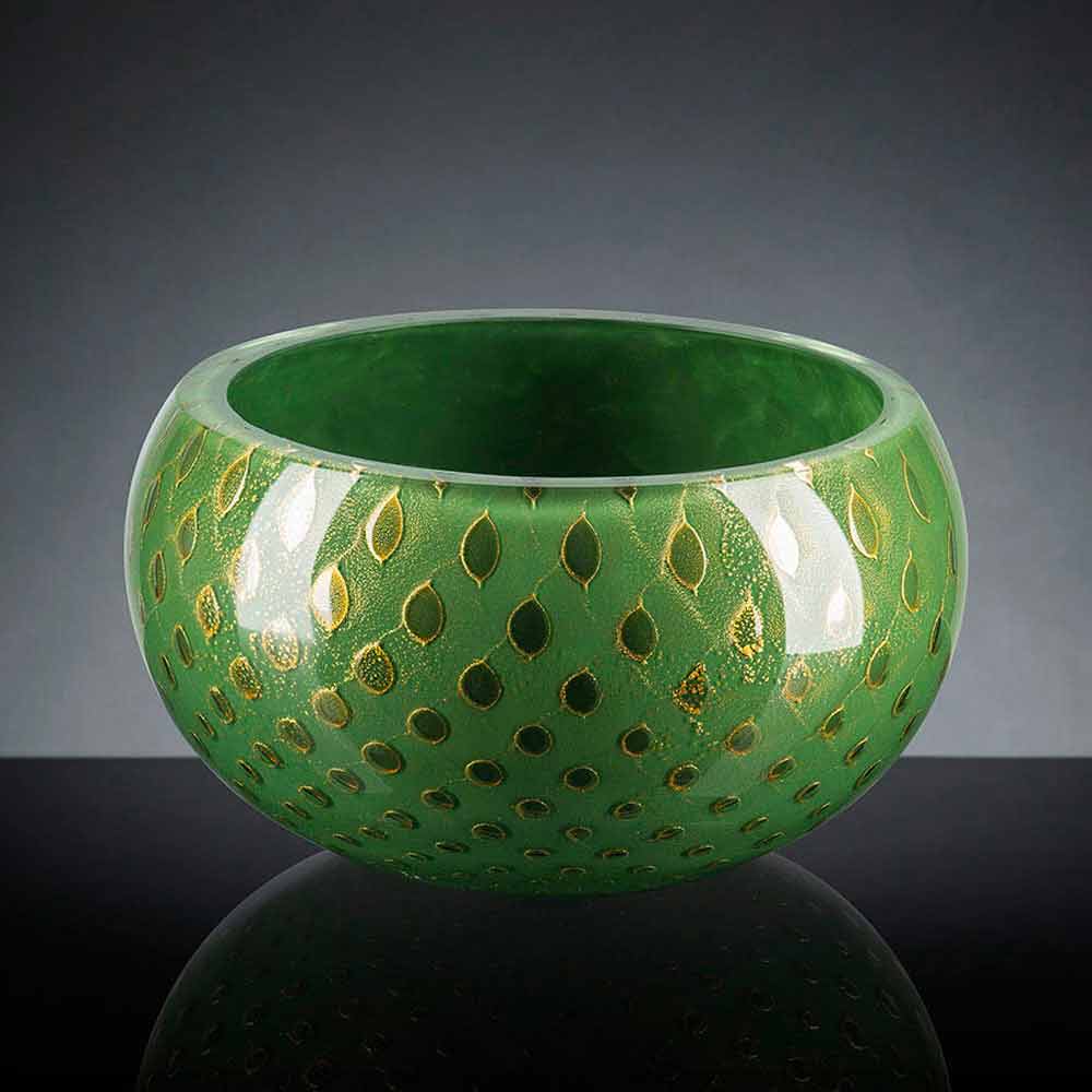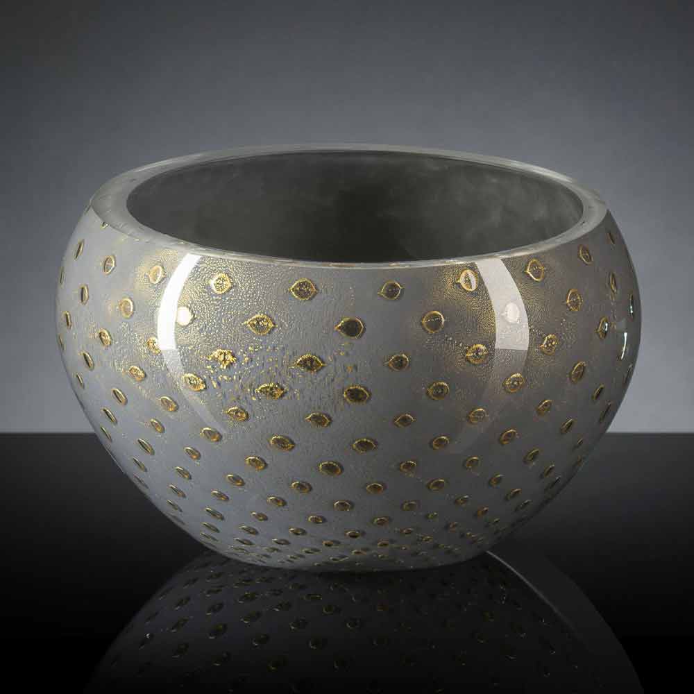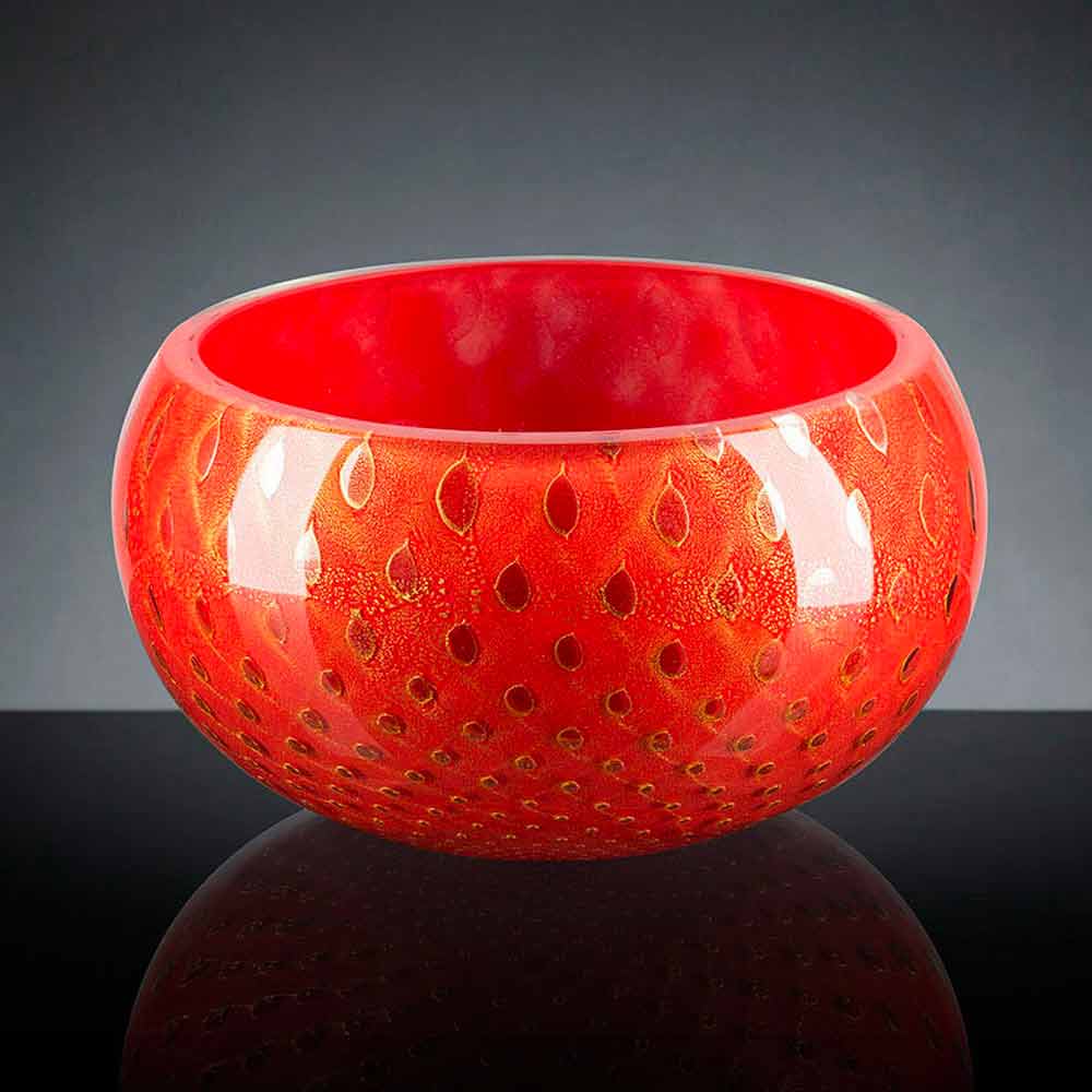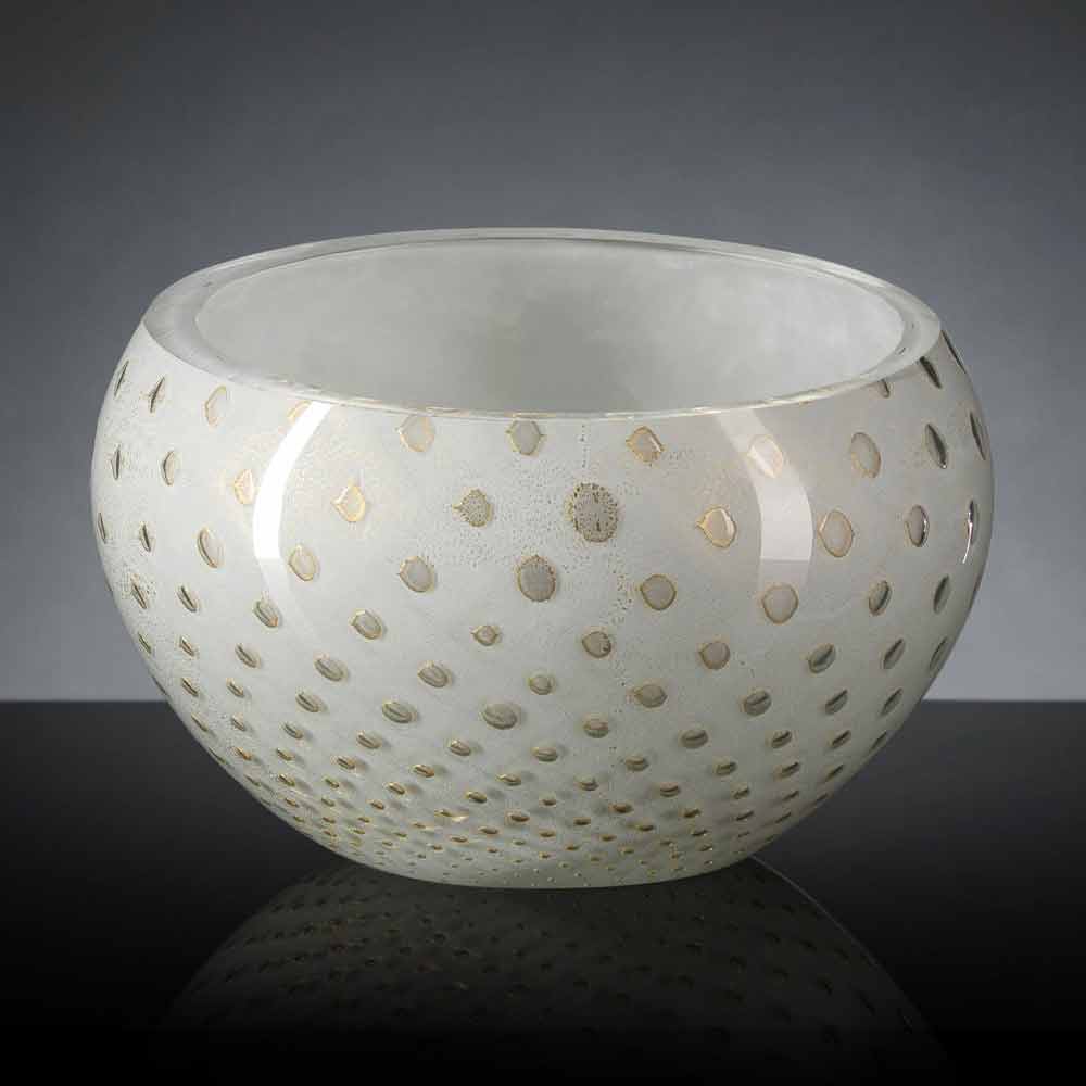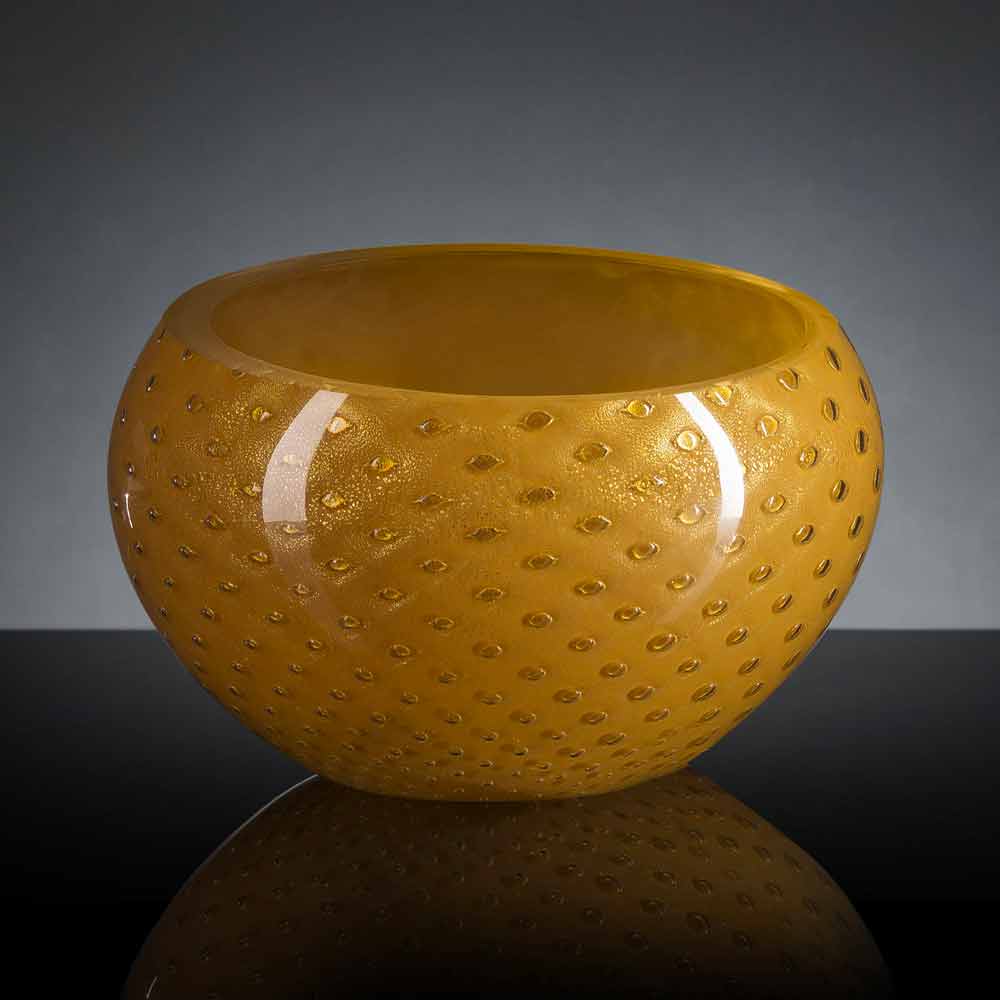 Vazo të rrumbullakët shtëpie në xham me ngjyra Murano në prodhim prodhuar në Itali.