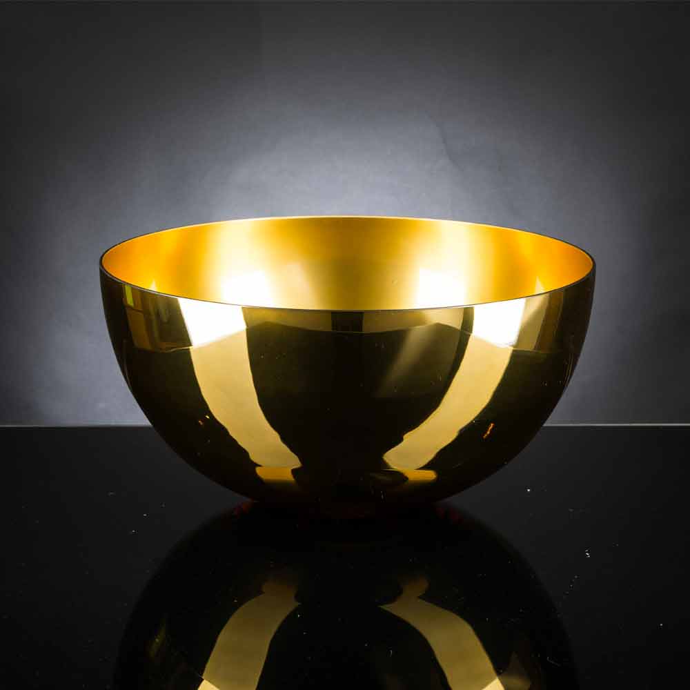 Vazo zbukuruese në formë të rrumbullakët prodhuar në Itali në xham të fryrë me një shkëlqim prej ari me shkëlqim 24k, të punuar me dorë nga prodhuesit e qelqit të cilët kanë qenë ekspertë në sektor për breza të tërë. Veçantia e tij përfaqësohet nga prodhimi artizanal i cili rrit vlerën dhe vlerën e tij për t'i dhënë jetë një rezultati ekskluziv dhe me cilësi të lartë . Ngjyra e veçantë e zgjedhur e bën atë një shtesë jashtëzakonisht elegante, e aftë të pasurojë orenditë përreth me personalitet. Një dizajn ideal për ambientet më të larmishme, nga orenditë e shtëpive deri tek ato të hoteleve, restoranteve, zonave të kontraktuara, llixhave por edhe si një mjedis për ngjarje dhe dasma.