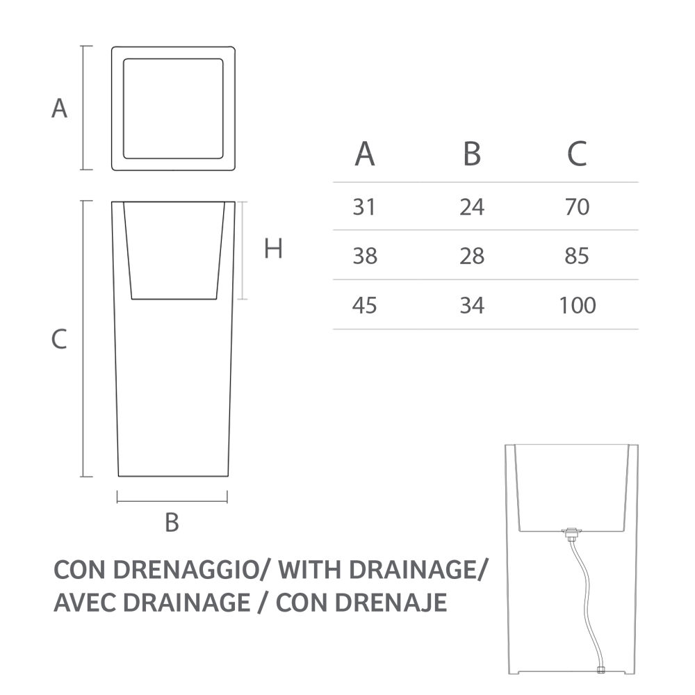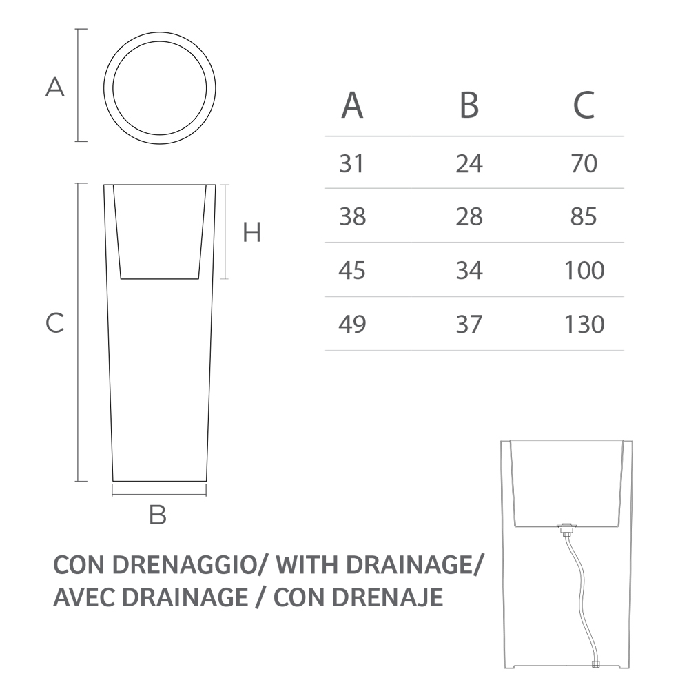Struktura përfshin një komplet kullues uji për të lejuar që kjo vazo të dekorojë hapësirat e brendshme dhe të jashtme pa sakrifikuar aspektin praktik dhe funksional. Së fundi, kjo vazo e brendshme është e pajisur me një dritë LED të integruar për t'i dhënë një prekje shtesë stilit hapësirave të brendshme por edhe ambienteve të jashtme gjatë eventeve.