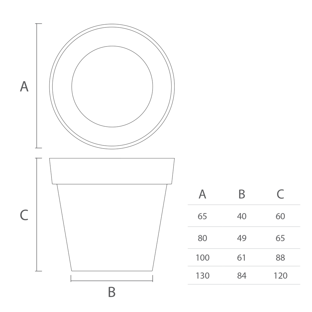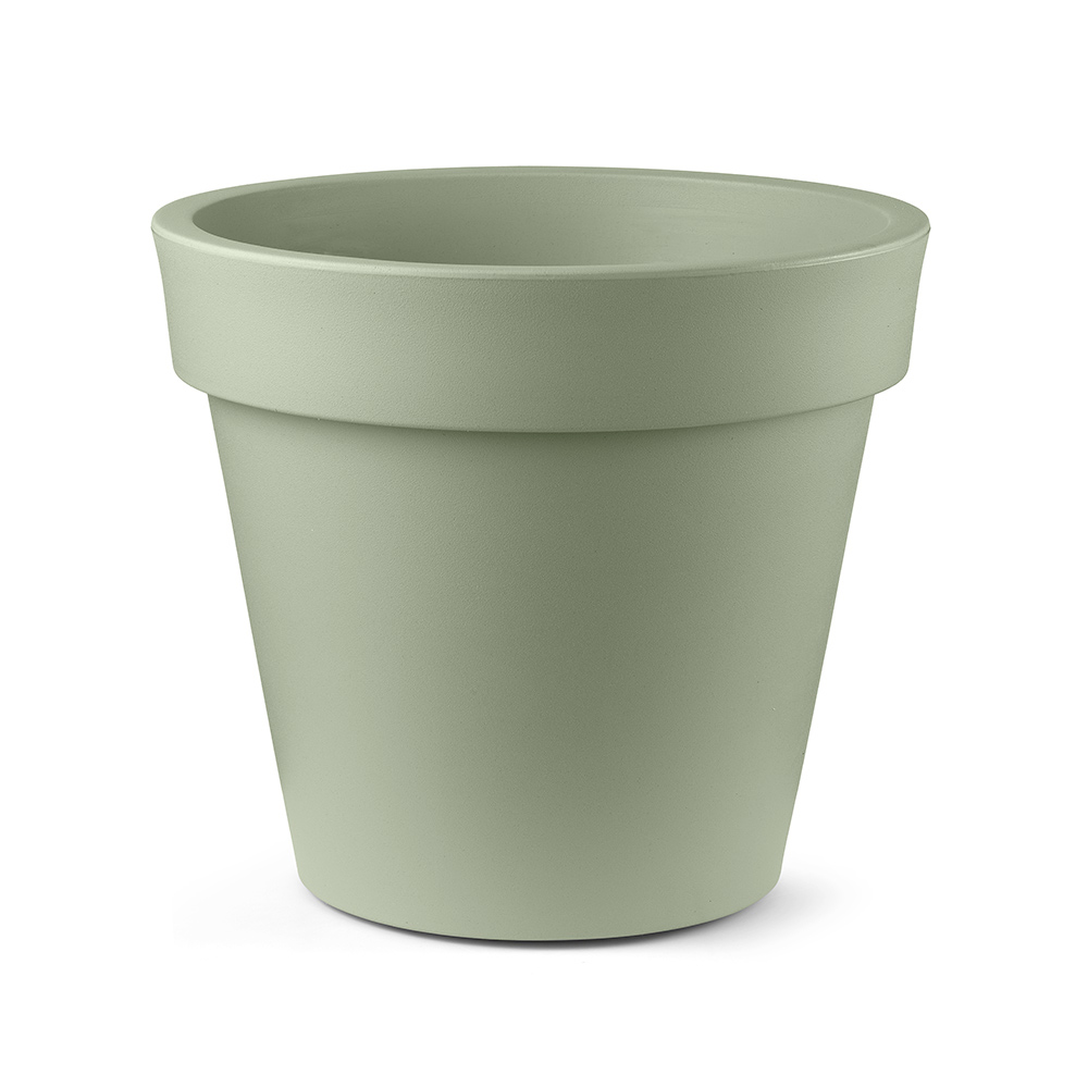 Vazo e jashtme nga polietileni me ngjyrë tërësisht e prodhuar në Itali . Ky aksesor arredimi me një siluetë thelbësore karakterizohet nga një dizajn klasik dhe origjinal , i krijuar për të zbukuruar hapësirat e jashtme me ndikim të madh skenik . Gama veçanërisht e gjerë e ngjyrave të disponueshme dhe përmasat e ndryshme, madje edhe ato të mëdha, e bëjnë këtë produkt të përsosur për arredimin e hapësirave të gjera duke krijuar ambiente me gjeometri ekstravagante dhe imponuese .