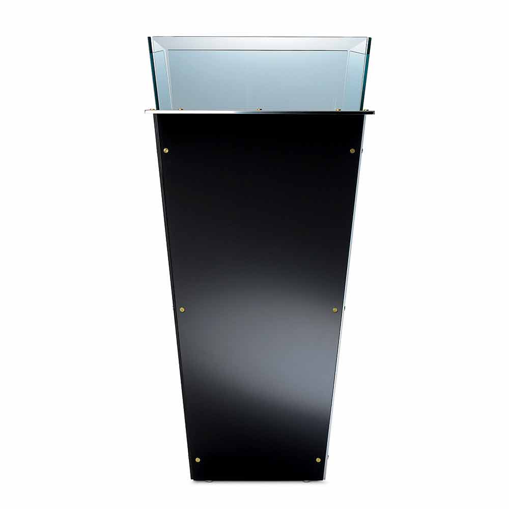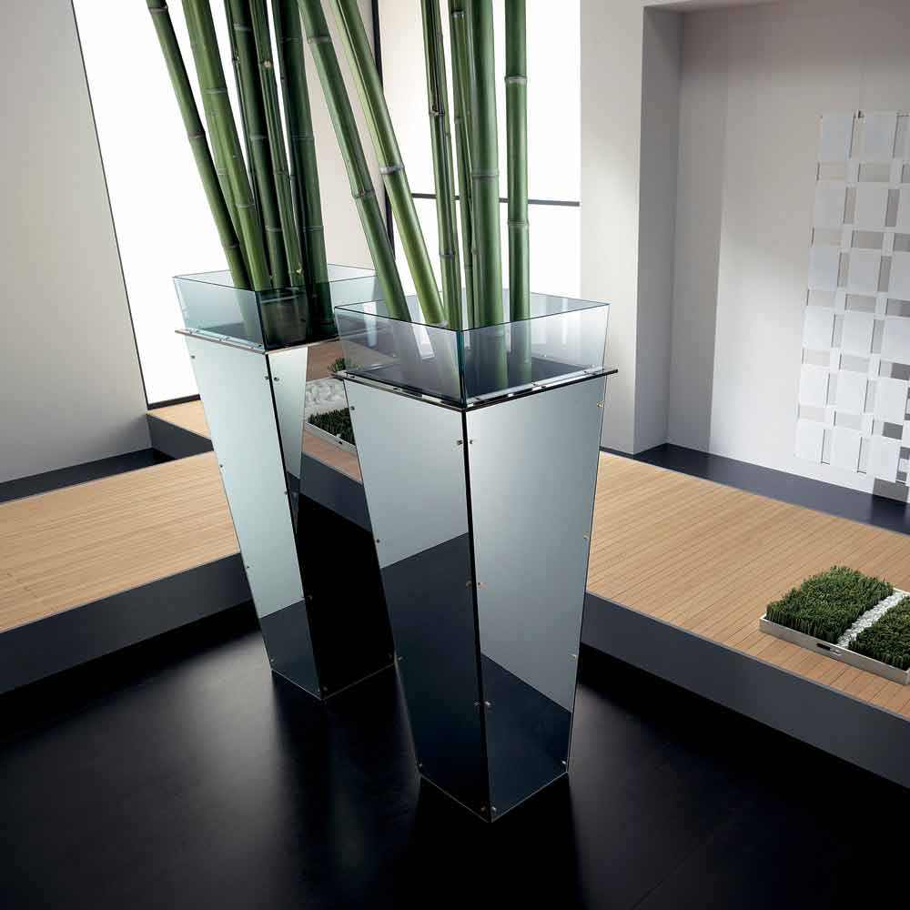 Kjo vazo e lirë në këmbë e disponueshme në madhësi të ndryshme karakterizohet nga panele anësore të këmbyeshme në përfundime të shumëfishta si: xham i zi i llakuar, xham i bardhë i llakuar, pasqyrë ose lëkurë.