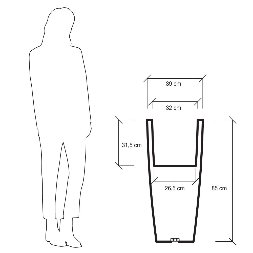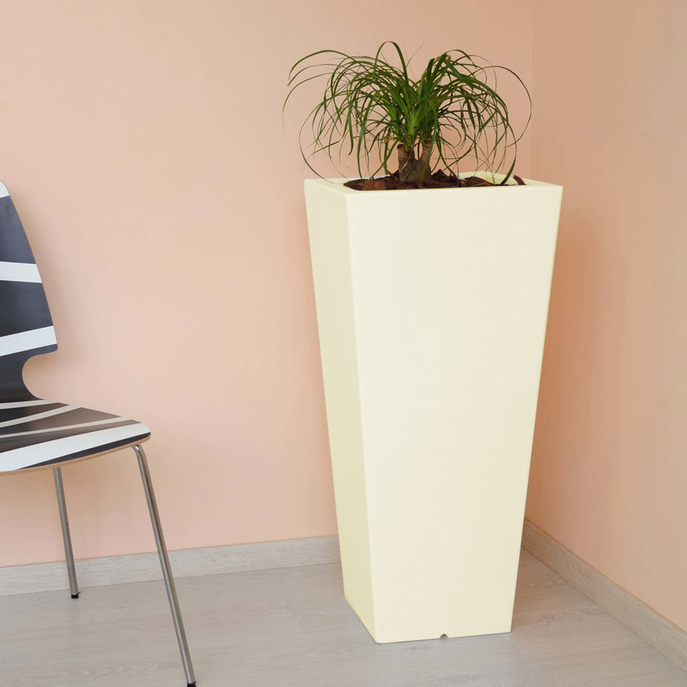 Vazo e gjatë me formë katrore, elegante dhe plot stil e përshtatshme për çdo kopsht. E bërë nga polietileni, është