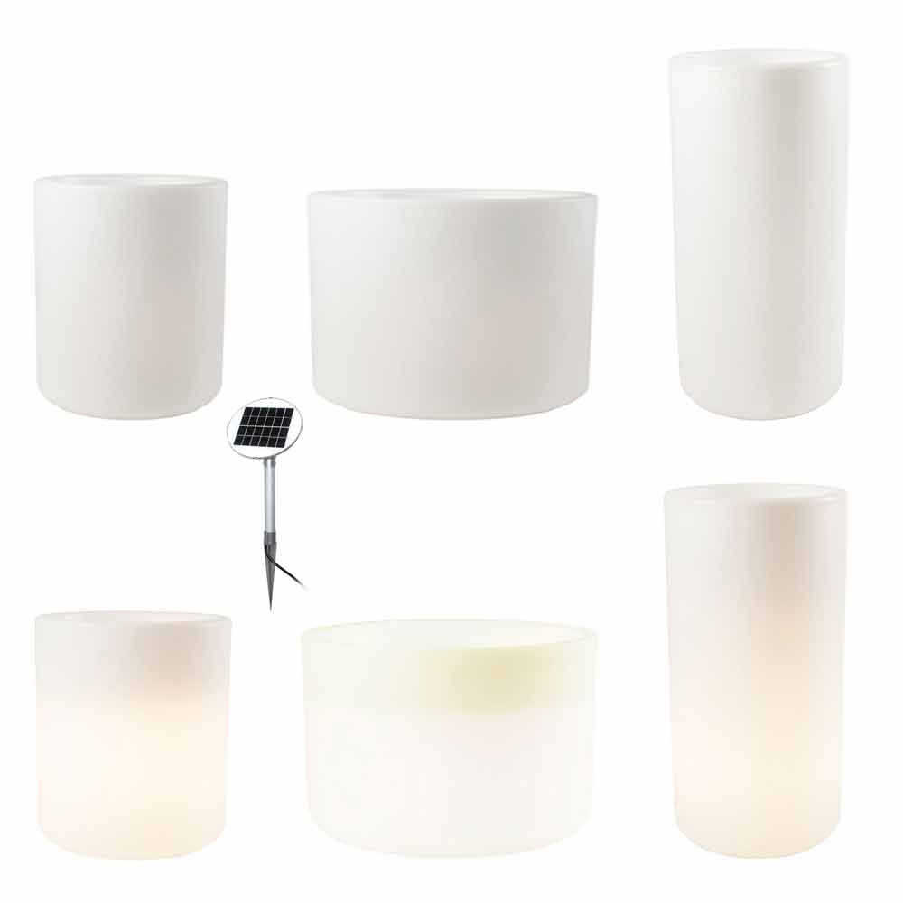 Vazo me shkëlqim e dizajnit modern dhe të gjithanshëm me led ose diellore në madhësi të ndryshme për brenda ose jashtë.