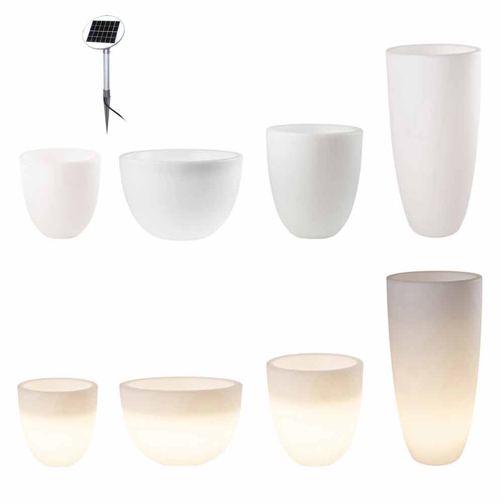 Vazo me shkëlqim e dizajnit modern dhe të gjithanshëm për ambiente të mbyllura ose të jashtme me led ose diellore në madhësi të ndryshme.