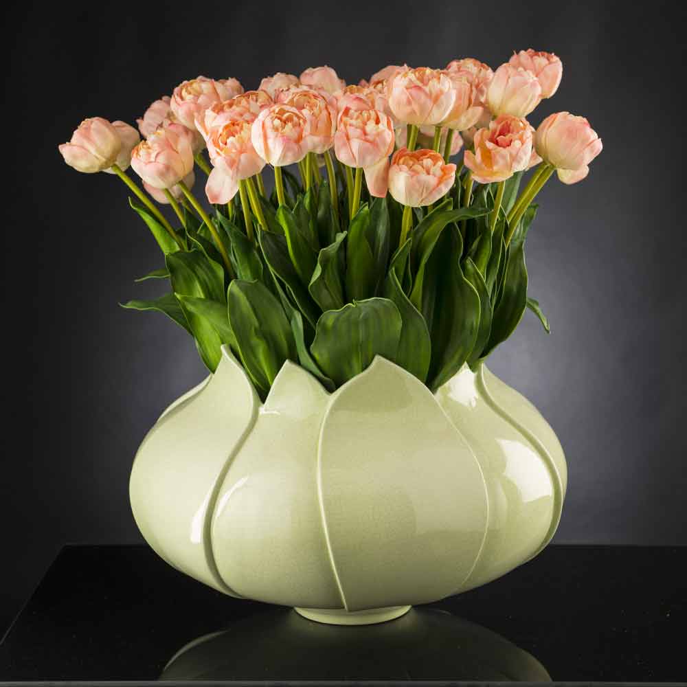 me qeramike me ngjyra të punuar me dorë në Itali. Një dizajn veçanërisht elegant që kujton format e një tulipani që ofron një
