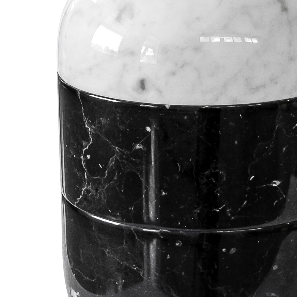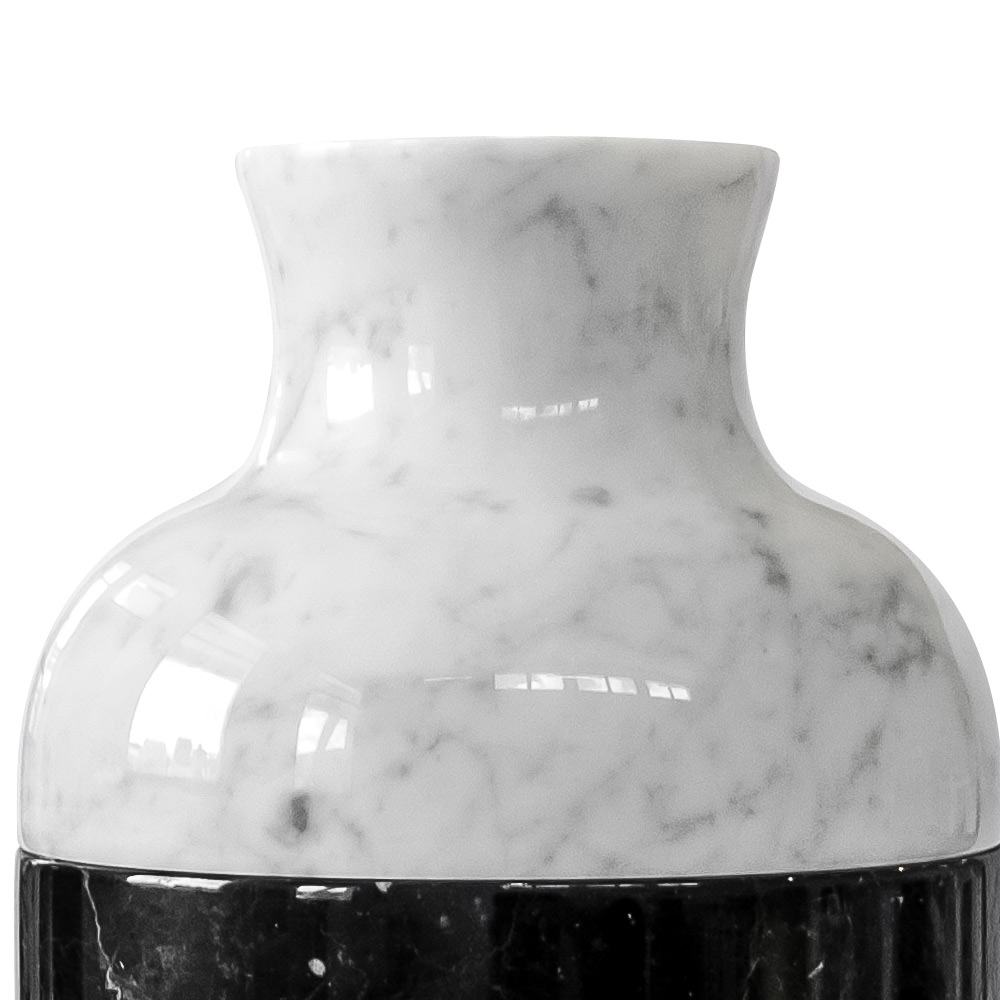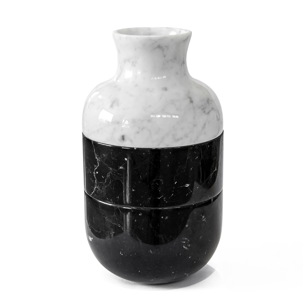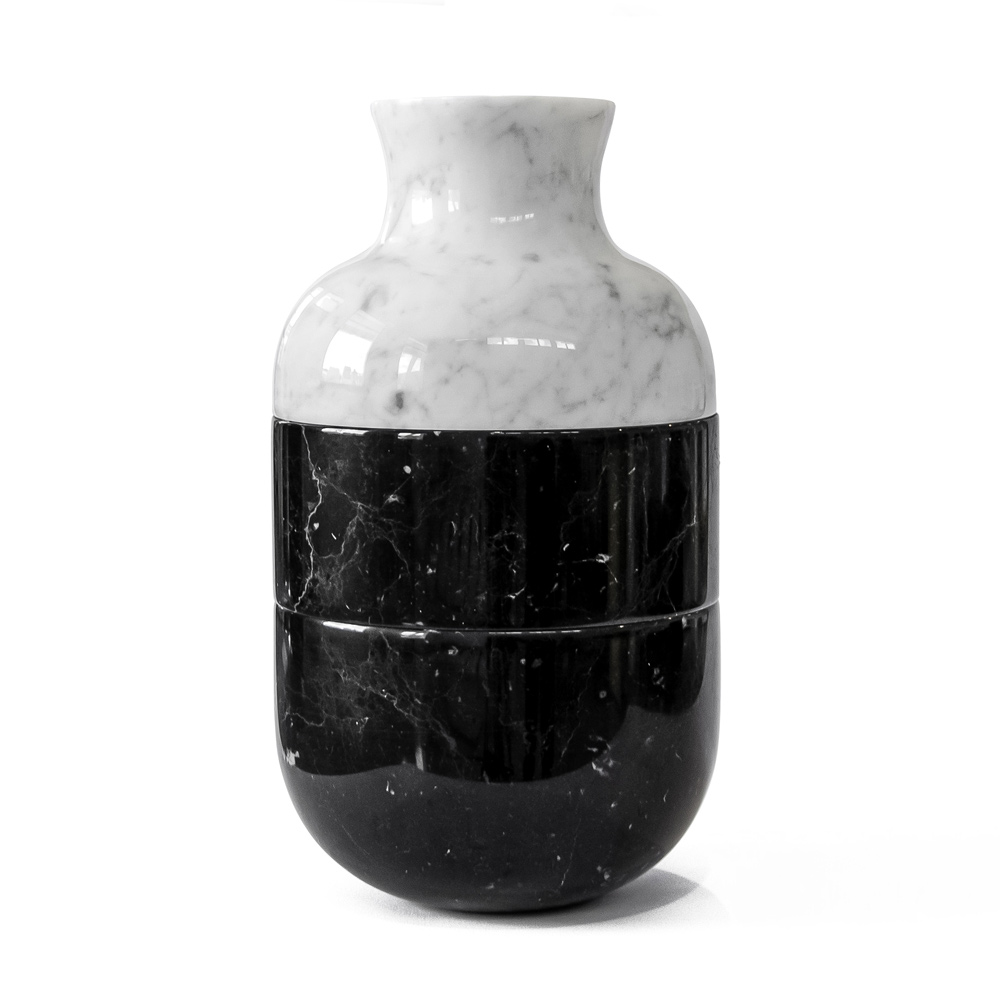 Vazo dekorative ne 3 pjese ne mermer te bardhe Carrara dhe Marquinia e zeze e prodhuar ne Itali.