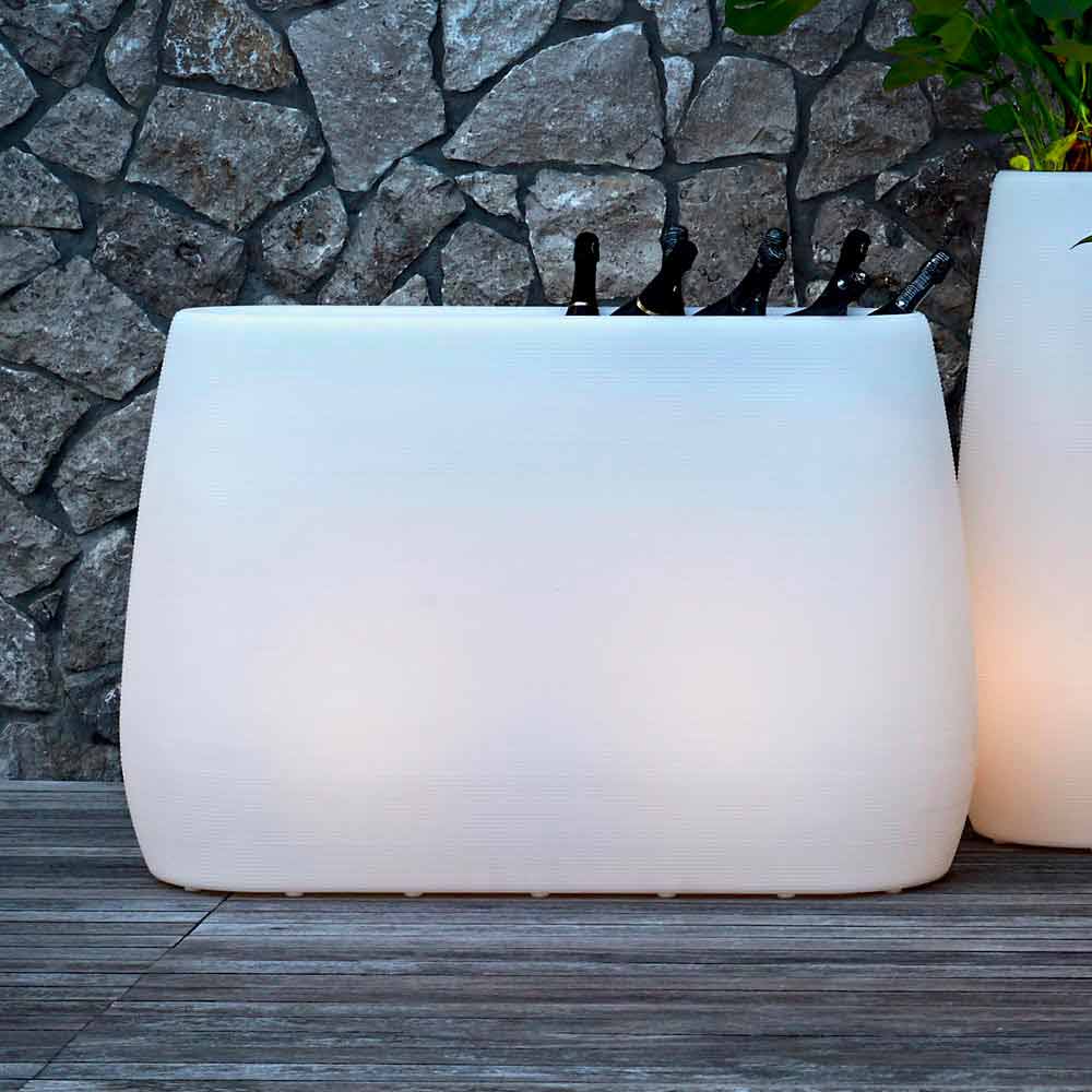 Prodhuar në Itali në poleasy transparente me ndriçim; në dispozicion në tre madhësi të ndryshme: - L 118 x P 45 x H 78 cm mund të përdoret gjithashtu si një kuti akulli, kërkon dy llamba fluoreshente kompakte E27 prej max 32W - 230V 50 / 60Hz; - L 45-25 x P 45 x H 98 cm kërkon një llambë kompakte fluoreshente E27 me maksimum 32W - 230V 50 / 60Hz; - L 45-25 x P 45-25 x H 78 cm kërkon një llambë fluoreshente kompakte E27 maksimum 32W - 230V 50 / 60Hz.
