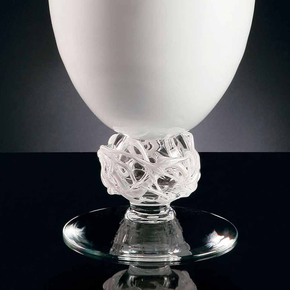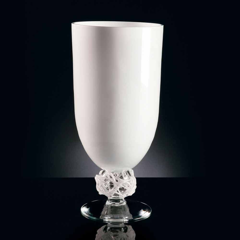 Vazo e punuar me dorë për ambiente të brendshme në xham të bardhë me bazë transparente Prodhuar në Itali.