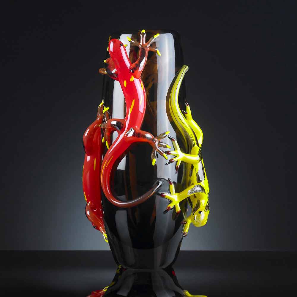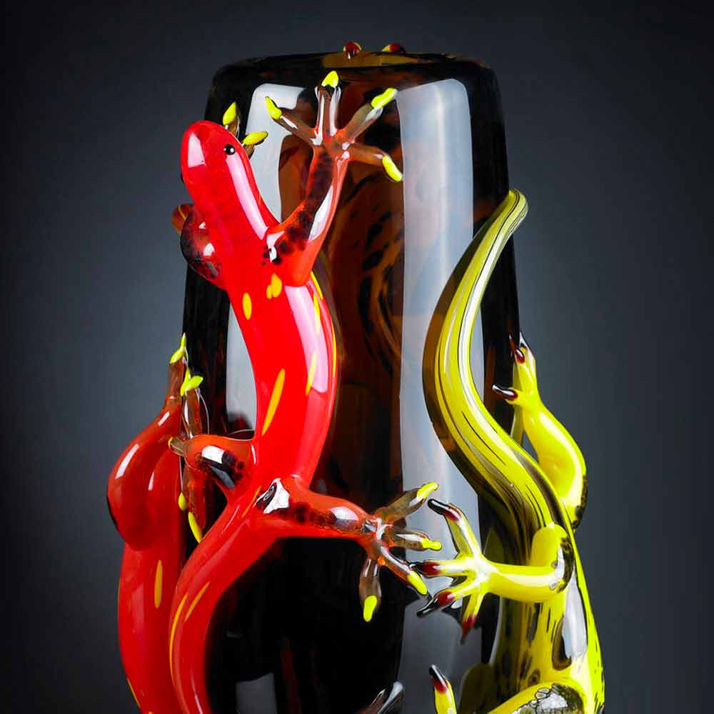 xhami kafe e punuar me dorë në Itali nga prodhuesit e qelqit mjeshtër të cilët kanë qenë ekspertë në sektor për breza të tërë, të pasuruar me 4 gekonë në hije të verdhë dhe të kuqe. Një element dekorativ i çuditshëm i aftë të japë një