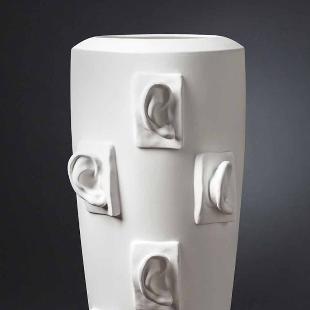 Vazo origjinale zbukuruese e brendshme me zbukurimenë punim të punuar me dorë qeramike të bardhë opake përmes një prodhimi të bërë tërësisht në Itali . Një dizajn i konceptuar dhe konceptuar për ata që duan të pajisin hapësirat e tyre në një mënyrë jashtëzakonisht inovative dhe revolucionare për një estetikë ekskluzive që mund të mbushë dhomën me karakter dhe personalitet. Nga bashkimi midis linjave të thjeshta dhe minimale dhe elementeve të ekstrapoluara nga veprat e artit të kulturës italiane, lind një vazo origjinale vlera e së cilës theksohet nga përdorimi i qeramikës, një material elegant dhe cilësor .Zejtaria nënvizon vlerën e saj dhe shënohet me saktësi, pasion dhe dashuri për traditën. Rezultati është një ide unike mobilimi ideale për ambientet më të larmishme, nga orenditë e shtëpive te hotelet, restorantet, zonat e kontratave, llixhat por edhe si një mjedis për ngjarje dhe dasma.