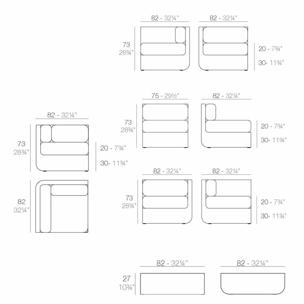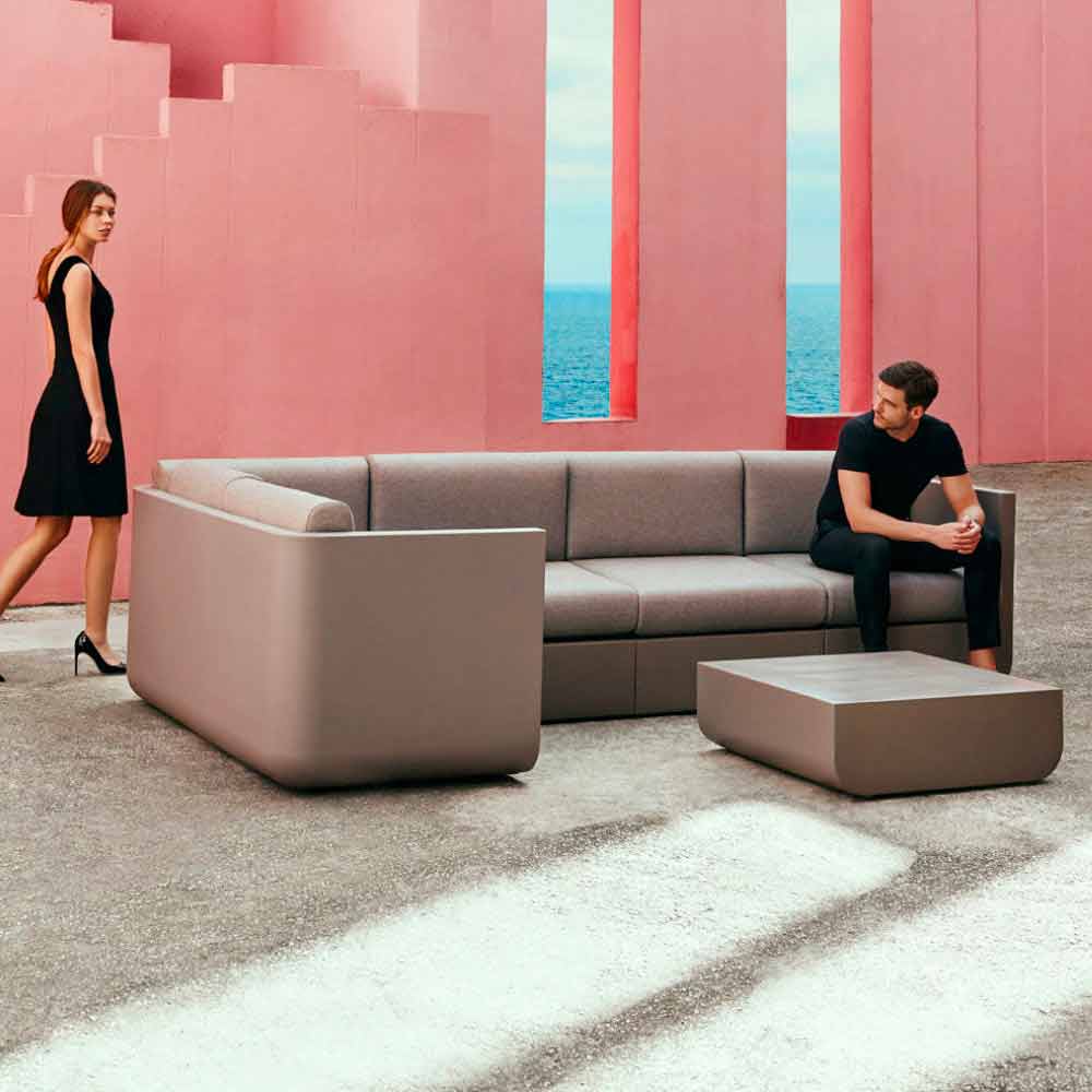Salloni i kopshtit me dizajn taupe i përbërjes Vondom Ulm Salloni ikopshtit Ulm nga Vondom i bërë nga polietileni nga një kallëp rrotullues me dy mure. 100% e riciklueshme. Taupe. E përbërë nga: - 1 modul i majtë L81.5 x P81.5 x H72 cm; - 2 module qendrore L82 x P75 x H72 cm secili; - 1 modul qoshe L81.5 x P81.5 x H72 cm; - 1 modul djathtas L81,5 x P81,5 x H72 cm; - 1 tavolinë L82 x P82 x H27 cm taupe me ngjyra.