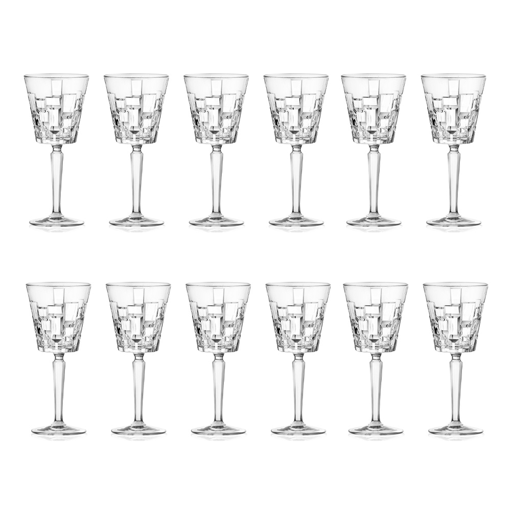 Set me gotë vere ose kristali me ujë me dekorim gdhendjeje prej 12 pjesësh të prodhuar në Itali.