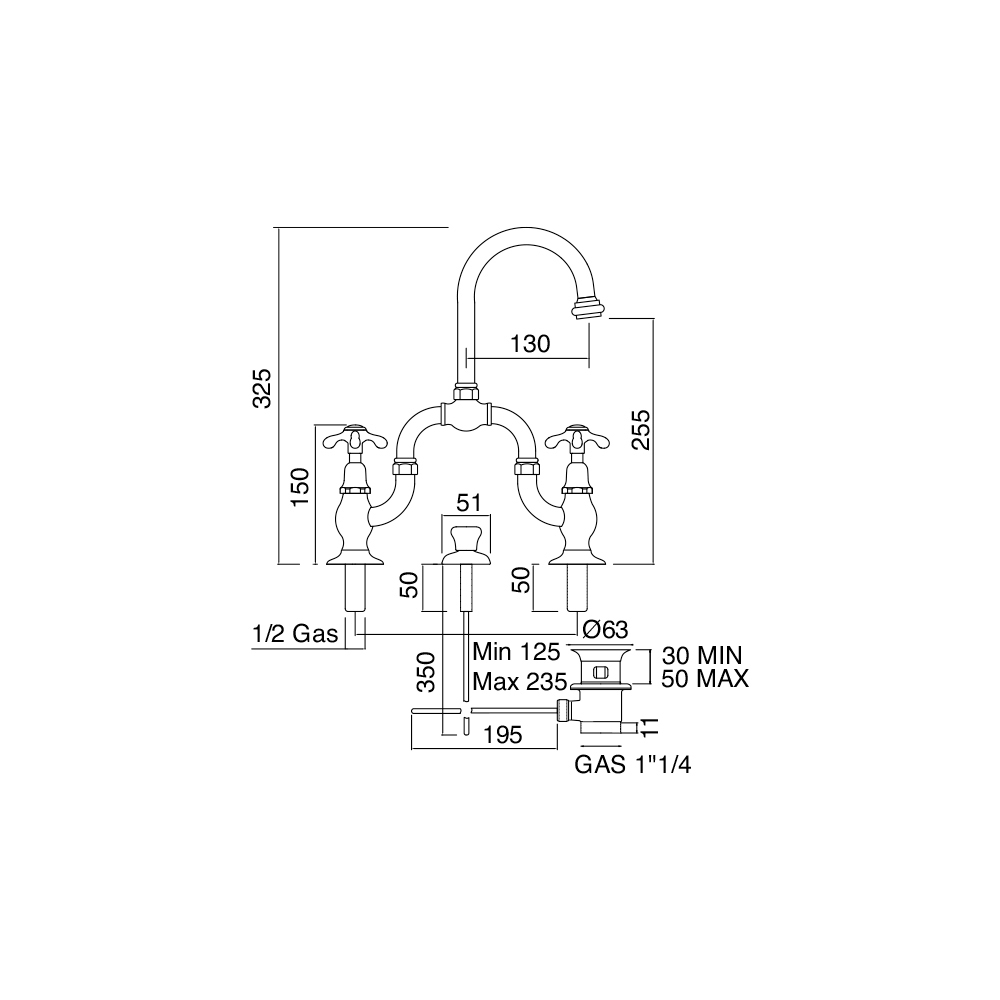 me urë të imët 2-3 vrima me kullim, distancë qendrore të rregullueshme dhe grykë të artikuluar.