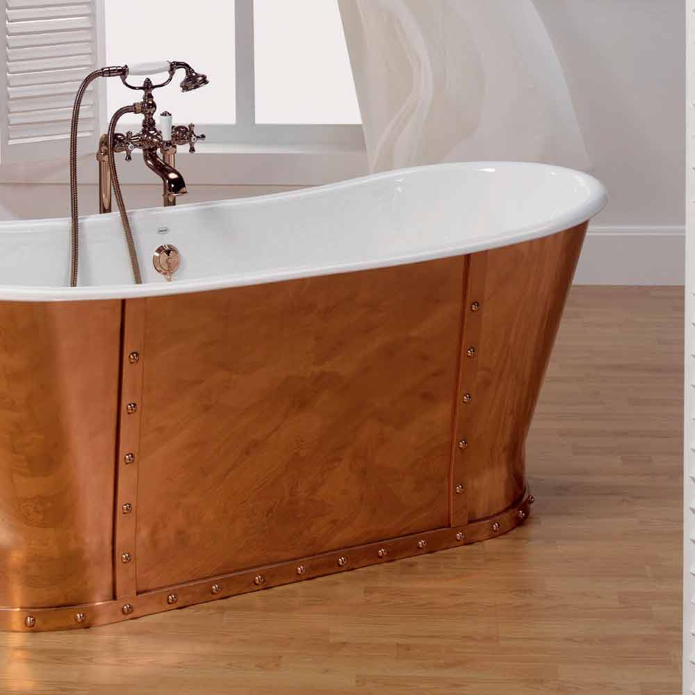 Projektoni vaskë prej gize të kromuar Vaskë e pavarur e bërë tërësisht prej gize mbështetur në tokë. Përfundim i brendshëm i smaltuar me titan 2 mm dhe i jashtëm i veshur me bakër. Vaskë që përfaqëson majën e luksit!