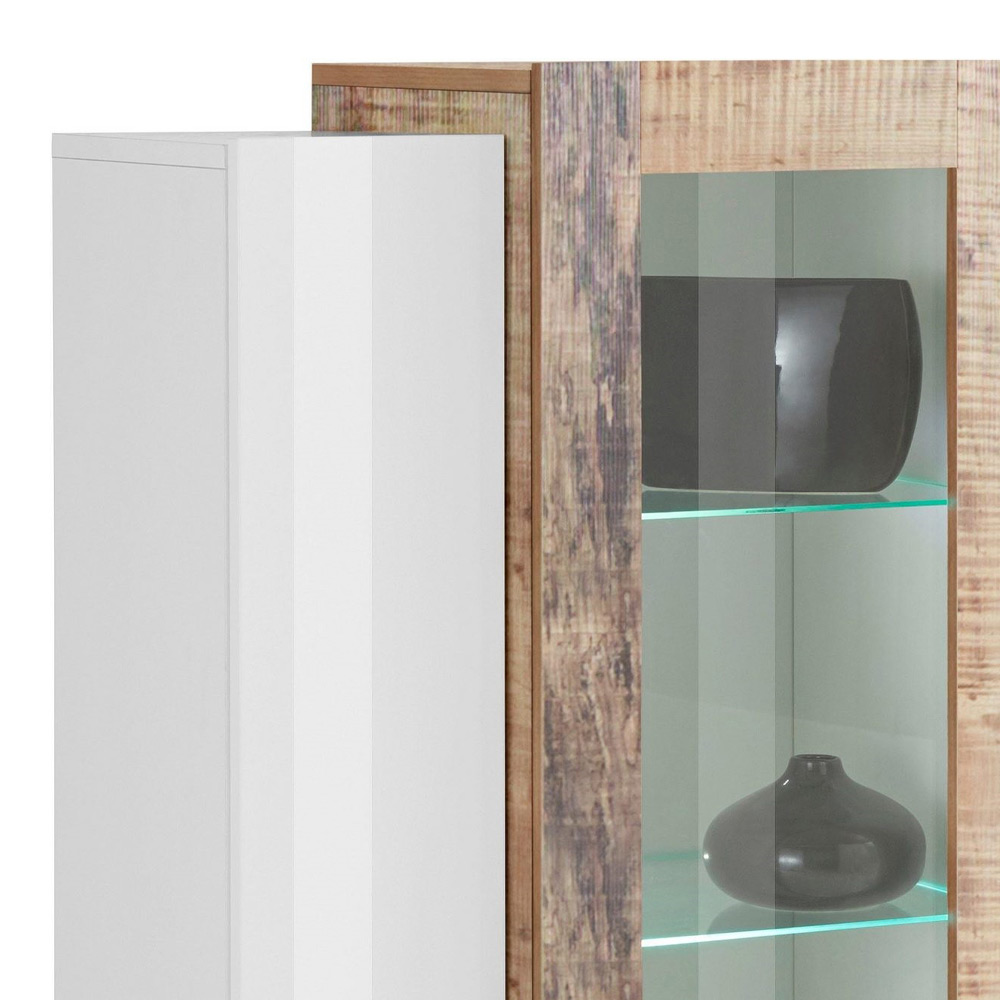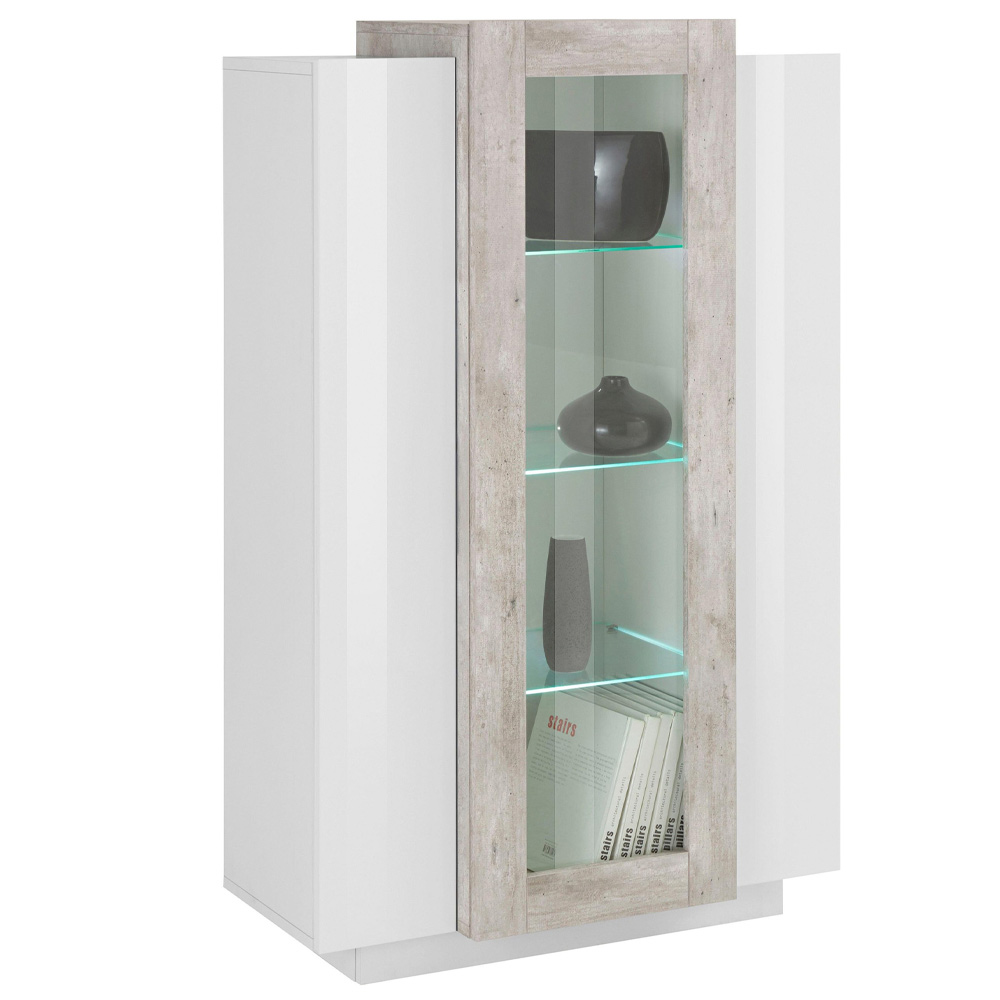 Vitrine me 3 dyer prej druri te bardhe me shkelqim dhe melamine 3 perfundime me ose pa led, prodhim Italian.