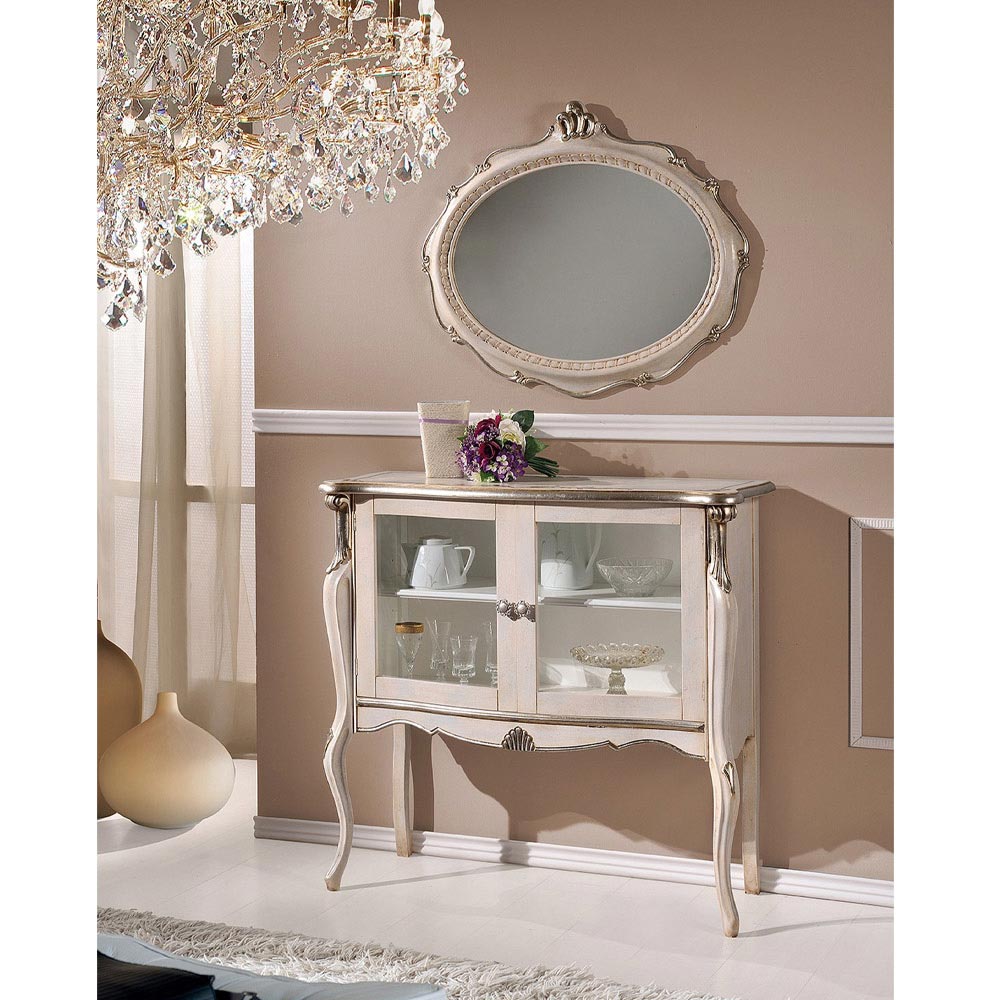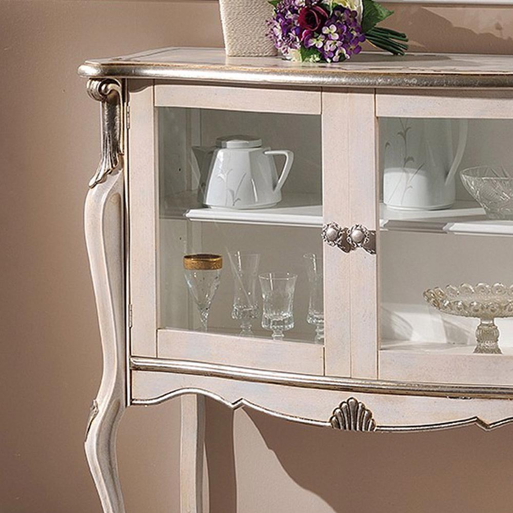 Ekspozimi i dhomës së ndenjes në stil klasik, prej druri dhe i kompletuar me 2 dyer elegante xhami, ideale për të dekoruar dhomën tuaj të ndenjes me elegancë të përjetshme. E disponueshme në dy variante: arrë Bassano dhe fije ari antike ose në dru të bardhë dhe argjend . Një plotësues unik dhe i rafinuar, i bërë tërësisht në Itali nga mjeshtra të aftë , mjeshtër të artit që përfundojnë çdo komplement me mençuri dhe shije për elegancë. Prodhimi kryhet duke përdorur materiale të shkëlqyera , dhe duke kryer punënmedorë me kujdesin dhe profesionalizmin maksimal që i dallon produktet Made in Italy .