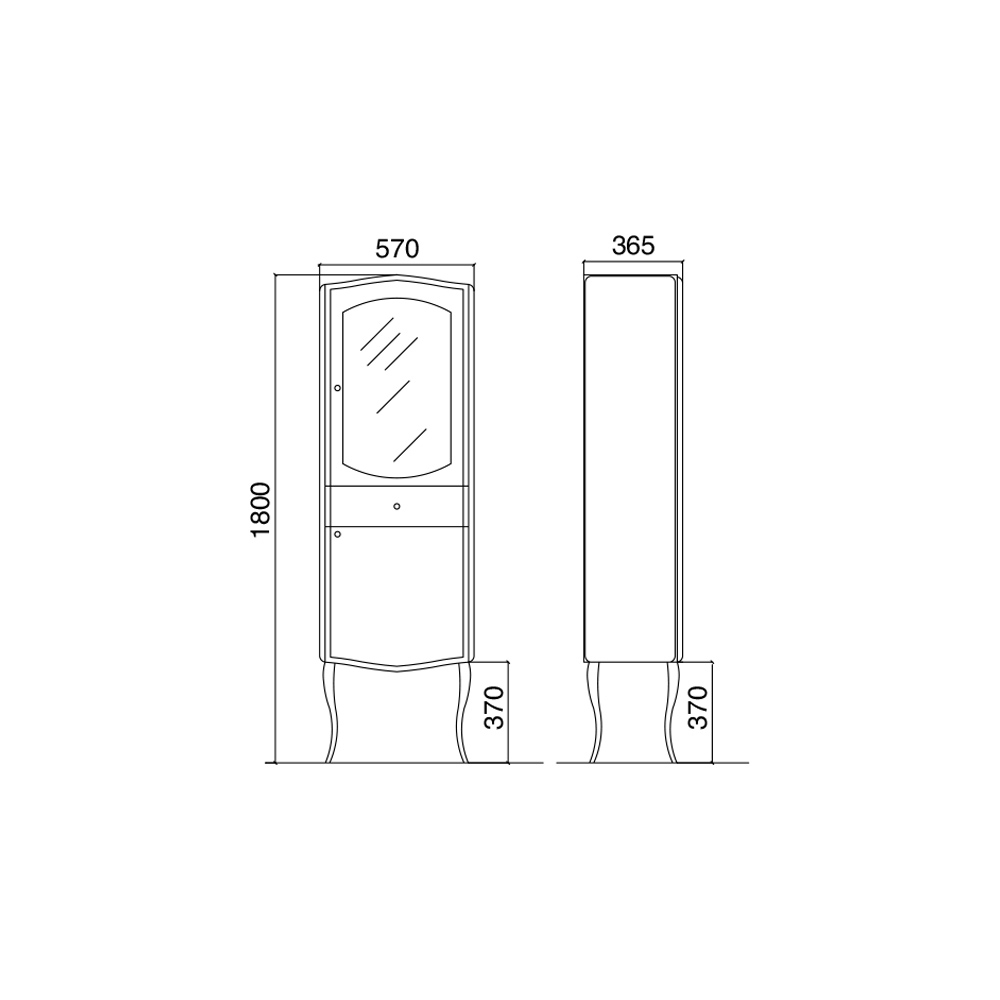 Përmasat: Gjatësia 57cm x Lartësia 180cm x Thellësia 36.5cm
