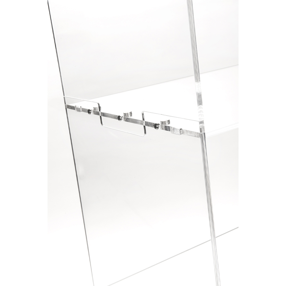 Ky dollap i përshtatshëm për çdo dhomë karakterizohet nga një dizajn shumëfunksional dhe nga transparenca e materialit me të cilin është bërë: pleksiglasi PMMA transparent 100% nga polimeri i virgjër, për një shkëlqim dhe shkëlqim të garantuar me kalimin e kohës. E përkryer në banjë, si dhe në zonën e banimit , trashësia e rëndësishme prej 6-8 mm e bën strukturën plotësisht vetë-mbështetëse me piedestal .