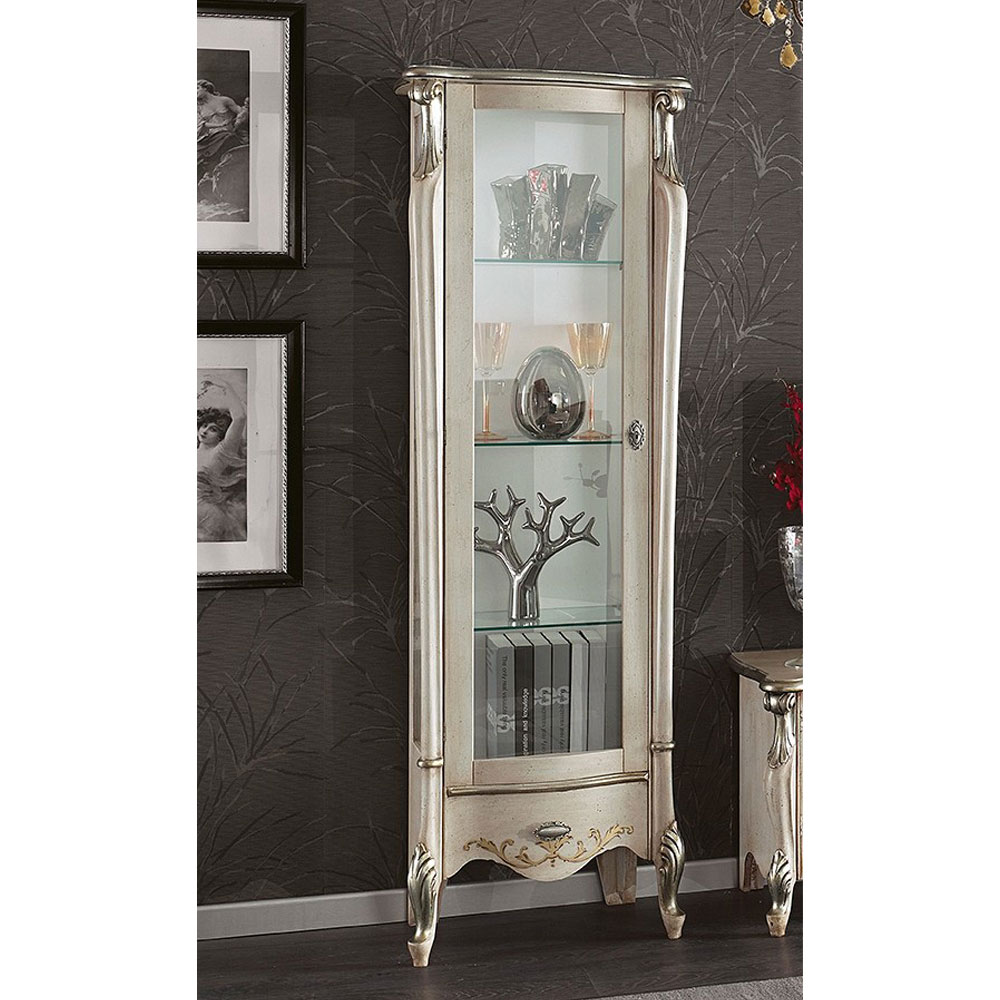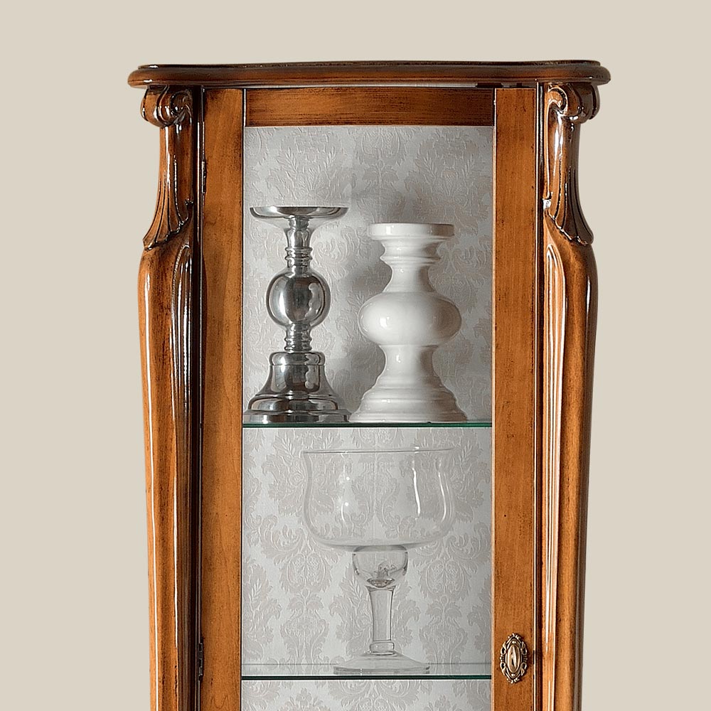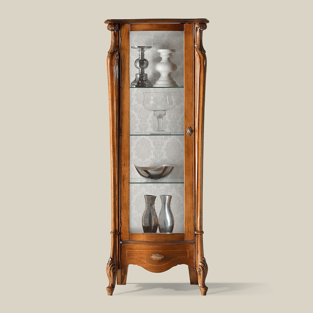 Kjo vitrinë e stilit klasik është e përkryer për të dekoruar një dhomë të gjallë me stil dhe elegancë. Eshte prej druri ne ngjyre arre Bassano ose ngjyre te bardhe antike dhe ka nje dere dhe nje sirtar praktik. Është gjithashtu e mundur të zgjidhni midis versionit me derën që mund të hapet djathtas ose majtas.Një komplement unik dhe i rafinuar, i bërë tërësisht në Itali nga mjeshtra të aftë , mjeshtër të artit që përfundojnë çdo komplement me mençuri dhe shije për elegancë. Prodhimi kryhet duke përdorur materiale të shkëlqyera , dhe duke kryer punënmedorë me kujdesin dhe profesionalizmin maksimal që i dallon produktet Made in Italy .