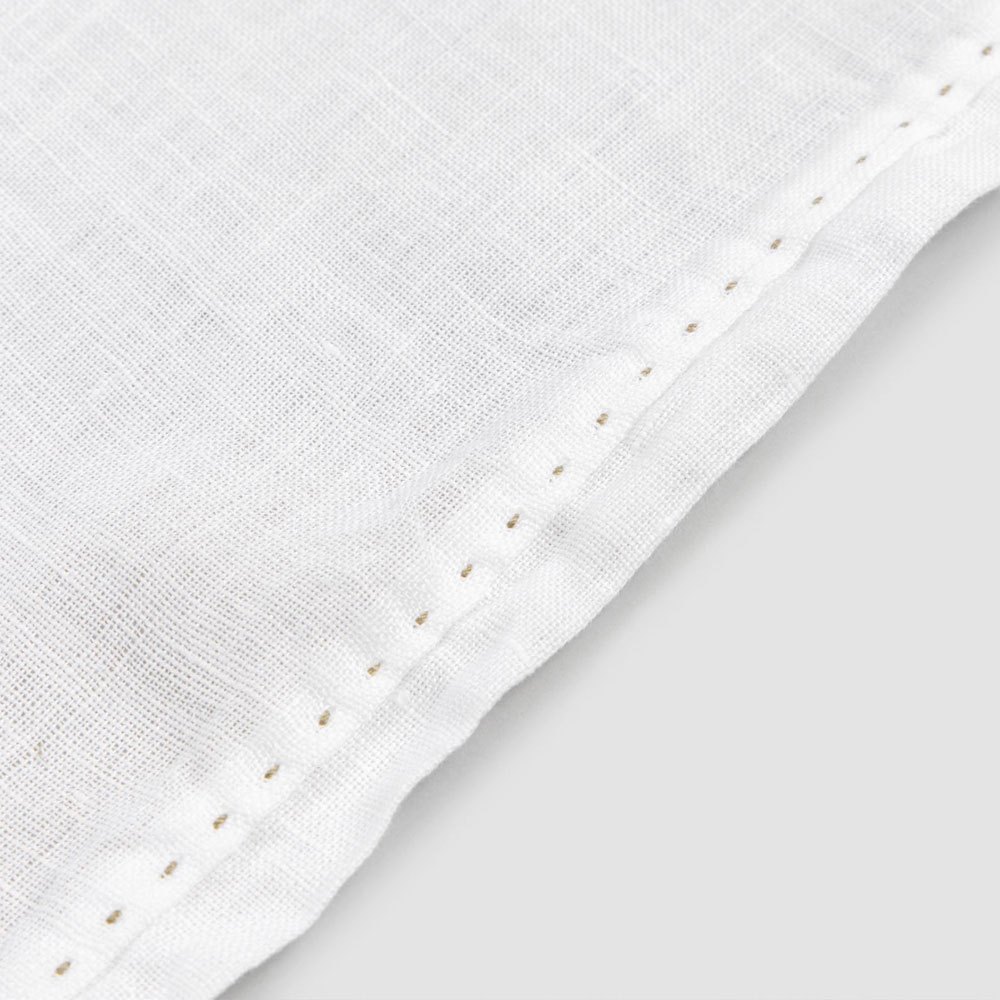 vrapues tavoline të bardhë prej liri me buzë të palosura dhe një