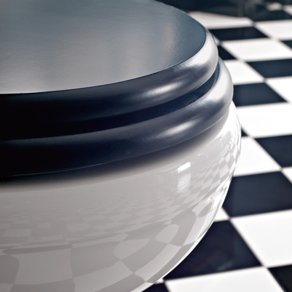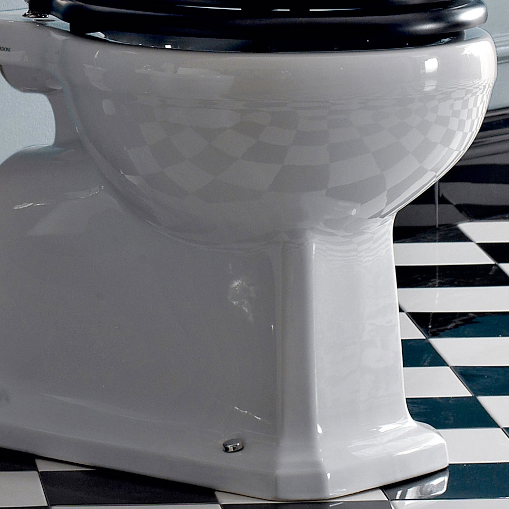 Kati i bardhë qeramike në këmbë WC, me vend dhe kuti të zezë mat, Marwa, e bërë në Itali