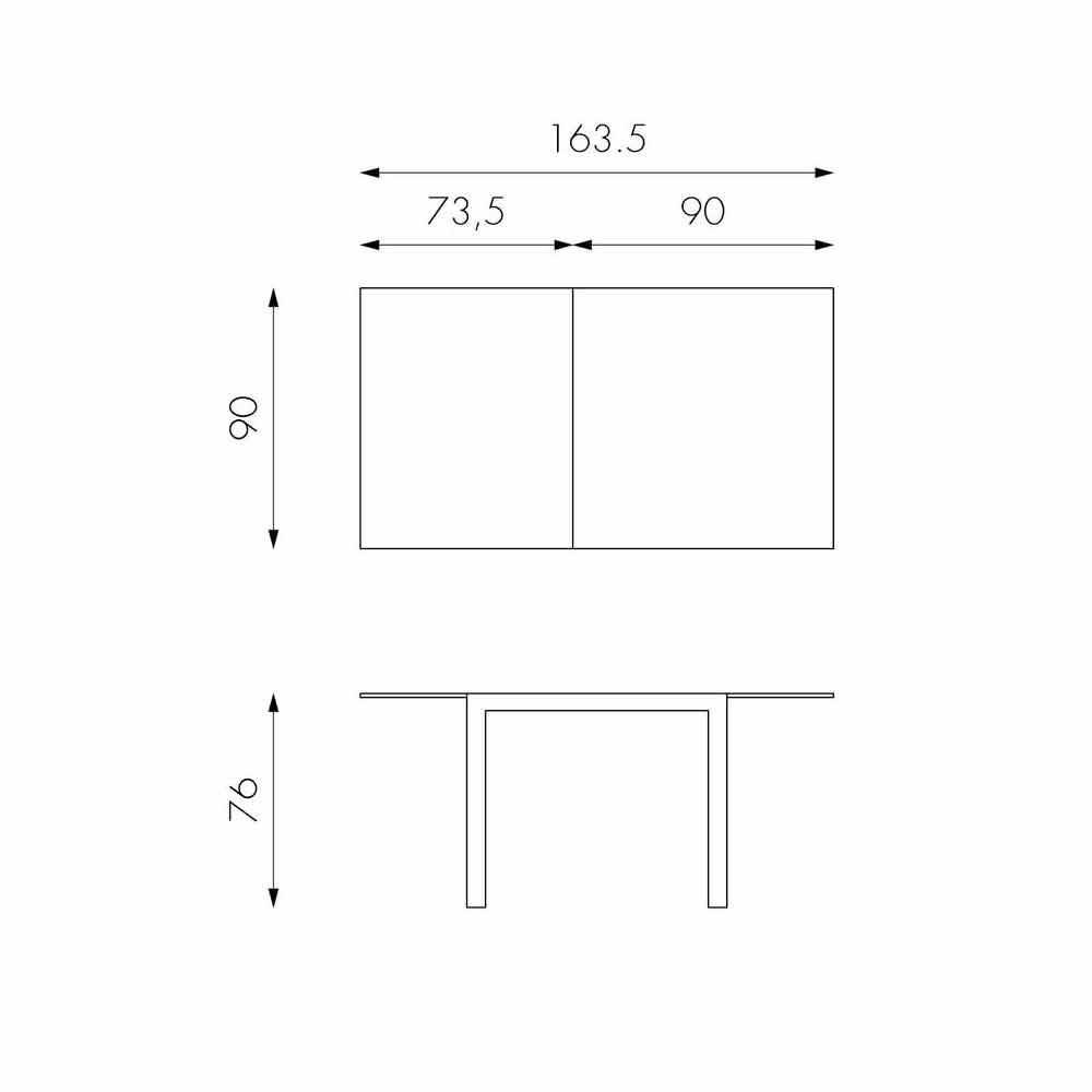 Zgjatja e tryezës së ngrënies Teo, me majën e tryezës së qelqit